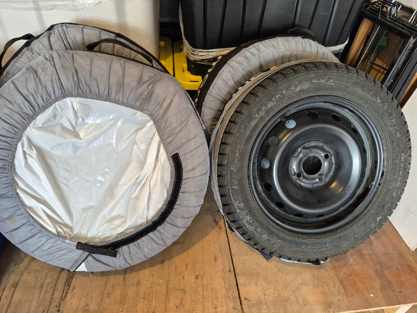 Selling a set of winter tires mounted on steel rims. The size is 185/60R15. They come with tire covers too!