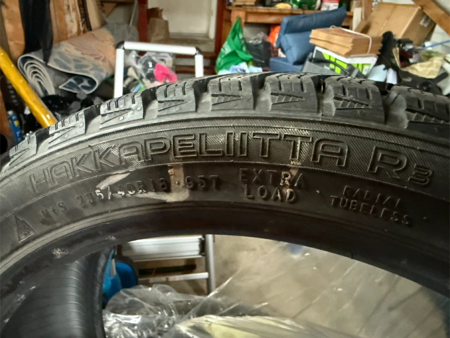 5Selling a set of Hakkapeliitta (3 tires) + Bridgeton (1) winter tires. The size is 235/40R18. They are extra load tires. Total 400$