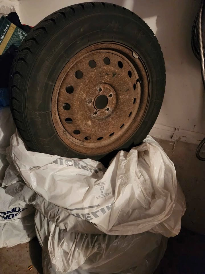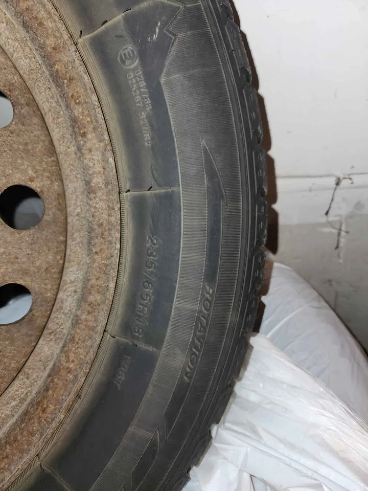 5Used winter tires and rims. Size 235 65 r18. 2 winters on Infiniti QX60. Tires don't fit on my new car. Tread still good for a couple of winters.