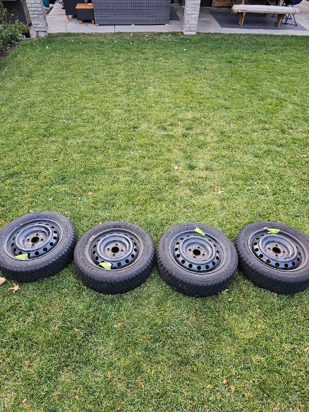67Winter tires on steel 4x100, 56.1. 185/55R 15. Great condition used on Honda Fit but traded in car. Set of 4. 2123 month and year made. Tires by Season: Winter For Sale By: Owner