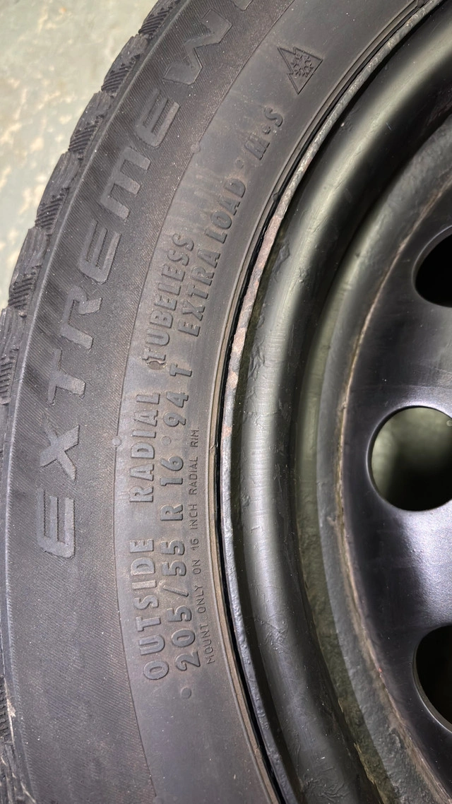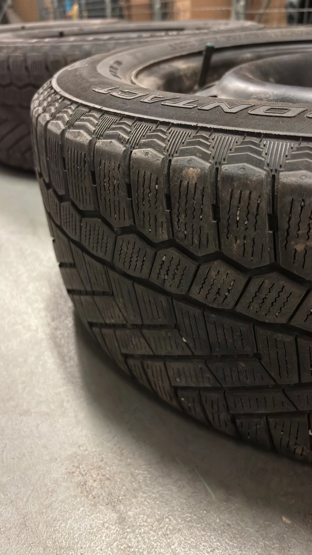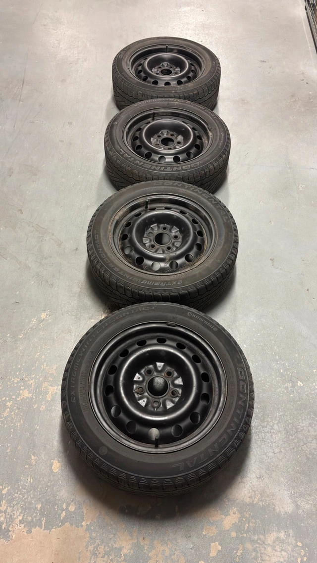 5I'm selling a set of four used Continental Extreme Winter Contact tires, size 205/55R16 94T, mounted on steel wheels. These winter tires have seen a few seasons, but they still have some tread left for those snowy commutes. Here are the specs: * Tire Brand: Continental * Tire Size: 205/55R16 * Tire Type: Winter Finding a good set of winter tires is like finding a warm cup of cocoa on a cold day—absolutely essential for getting around safely! And remember, if the ad is up, they're still available!