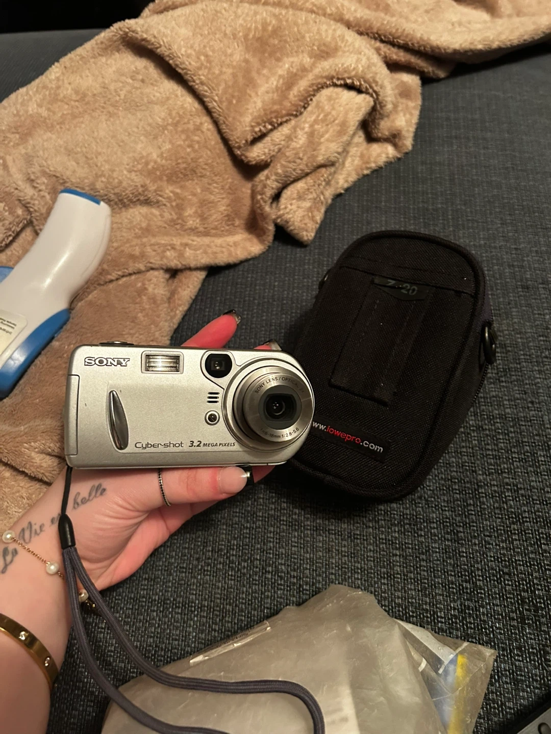 Sony Cyber-shot camera with 3.2 megapixels. Comes with a LowePro camera case. Battery powered.