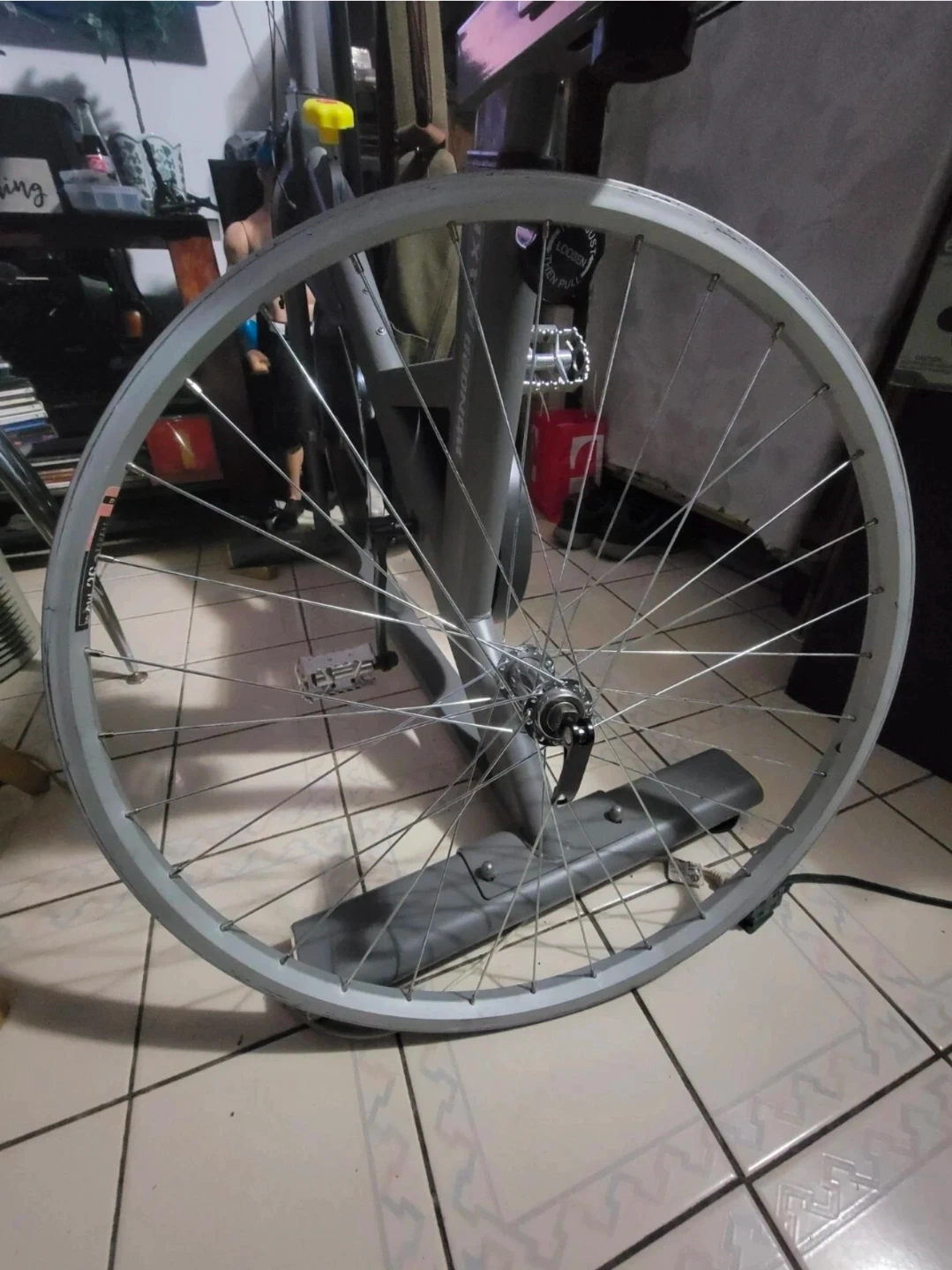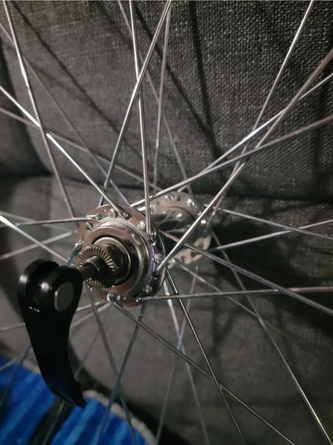 This alloy front bike wheel is lightly used, sealed bearing and comes with skewer quick release skewer clip bolt lever but bolt missing (see last photo).