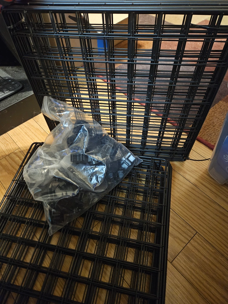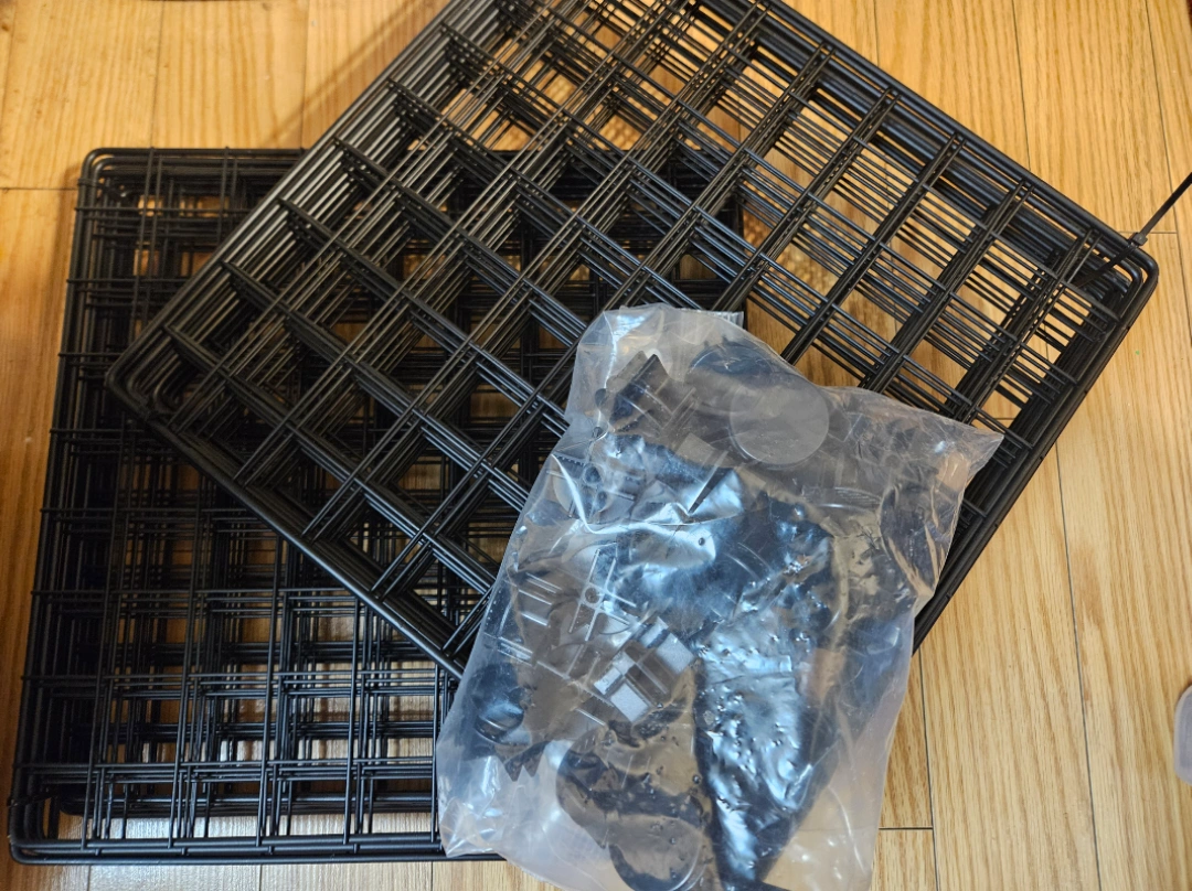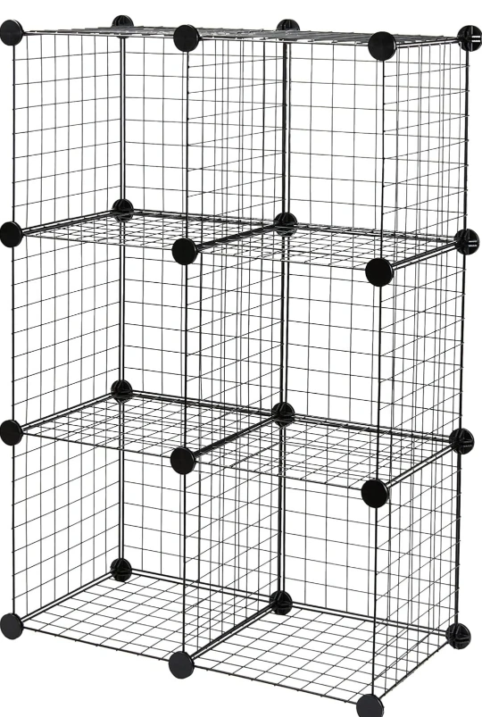 58Selling a 6 Cube set of wire cube storage/shelving. Contains 23 12"x12" wire squares that can be constructed together into whichever form works best for your purposes. Also contains plastic connector pieces to attach the wire squares together. There are 24+ (I counted 27) of these pieces total. I originally purchased this set for a vendor table display at a convention, but only used it once. It's been in storage since then, kept together with zip ties. Asking $25.