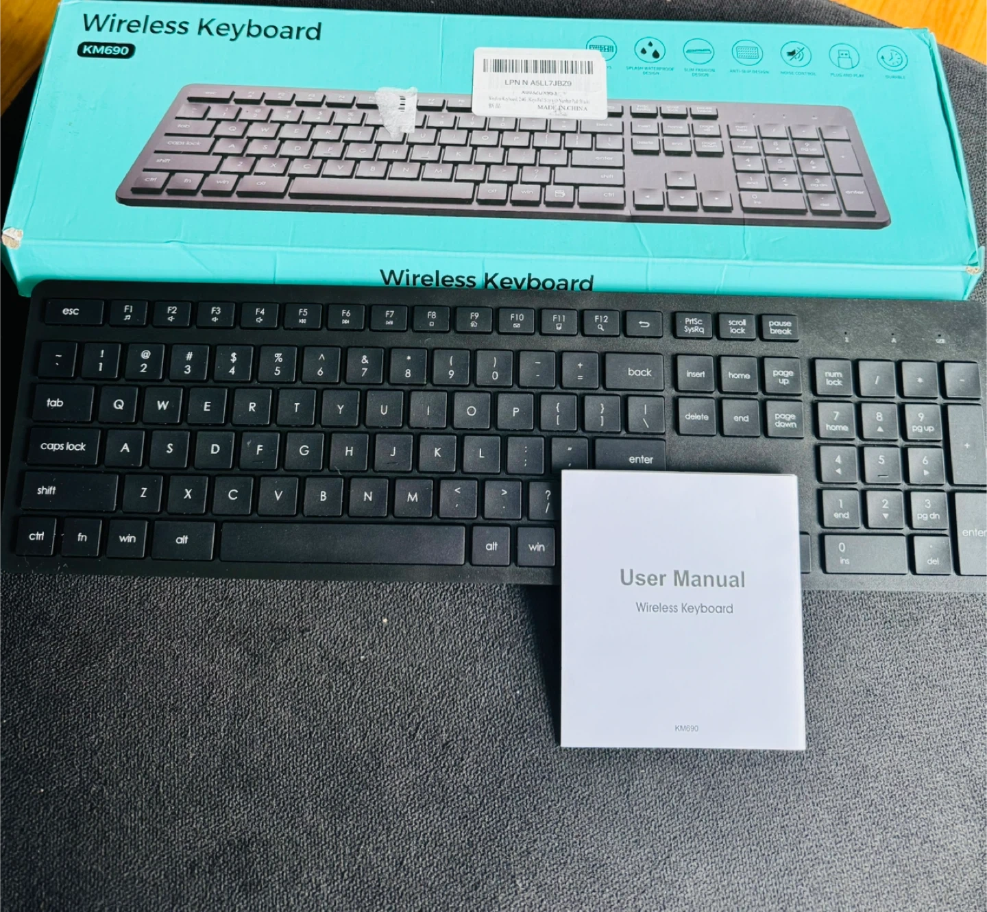 Selling a wireless keyboard, model KM690. It's in excellent condition and comes with the user manual and original box.