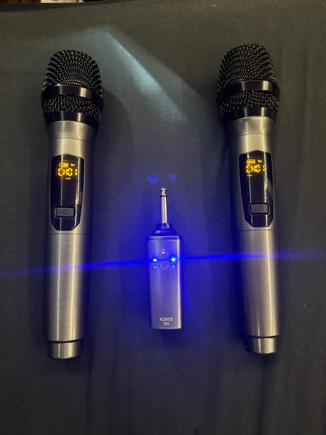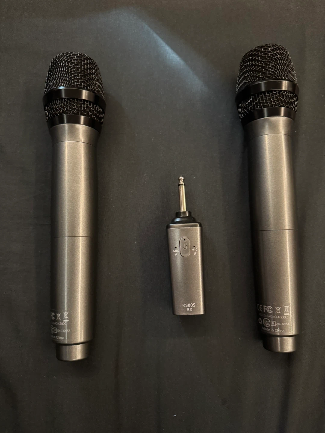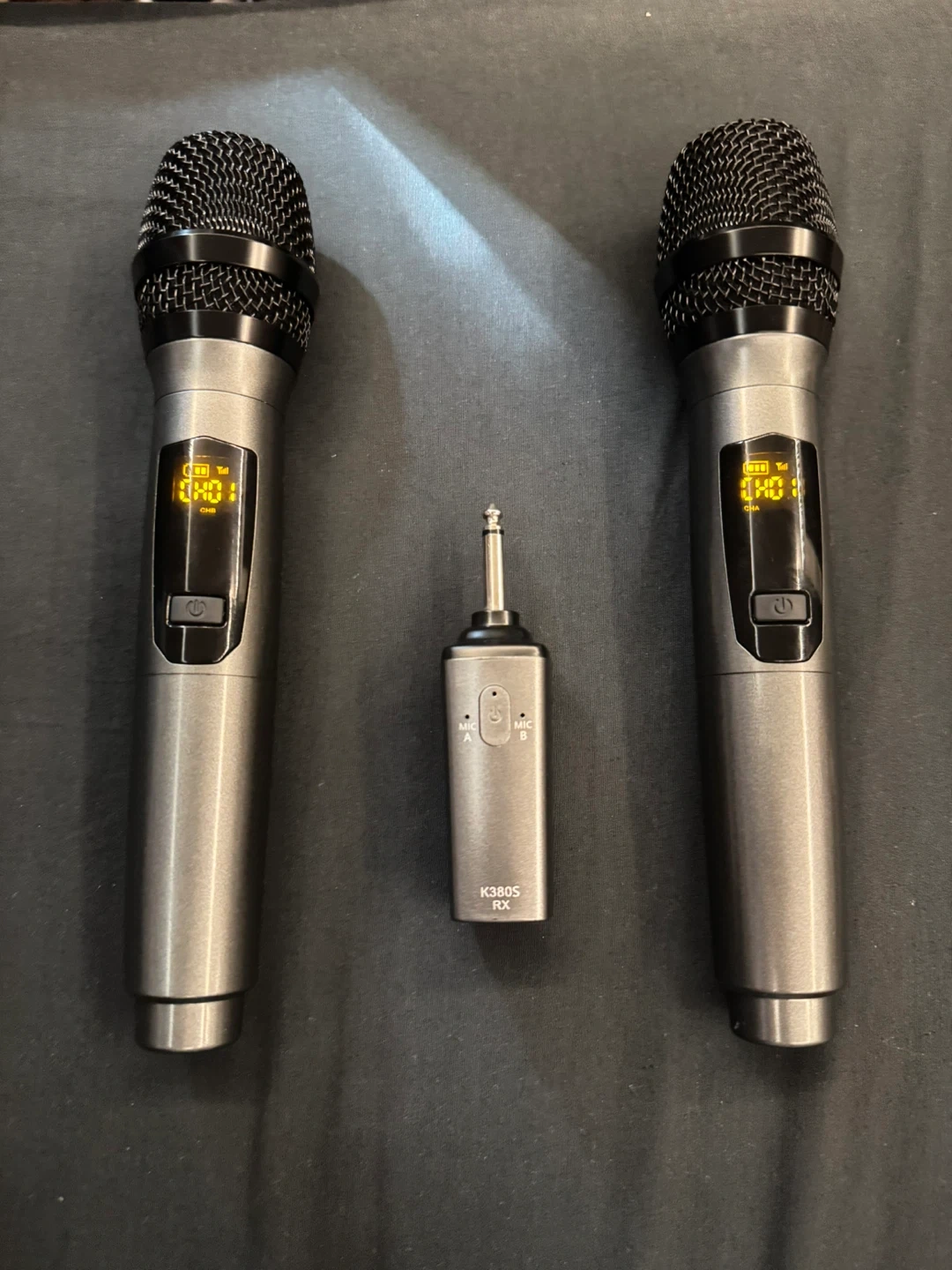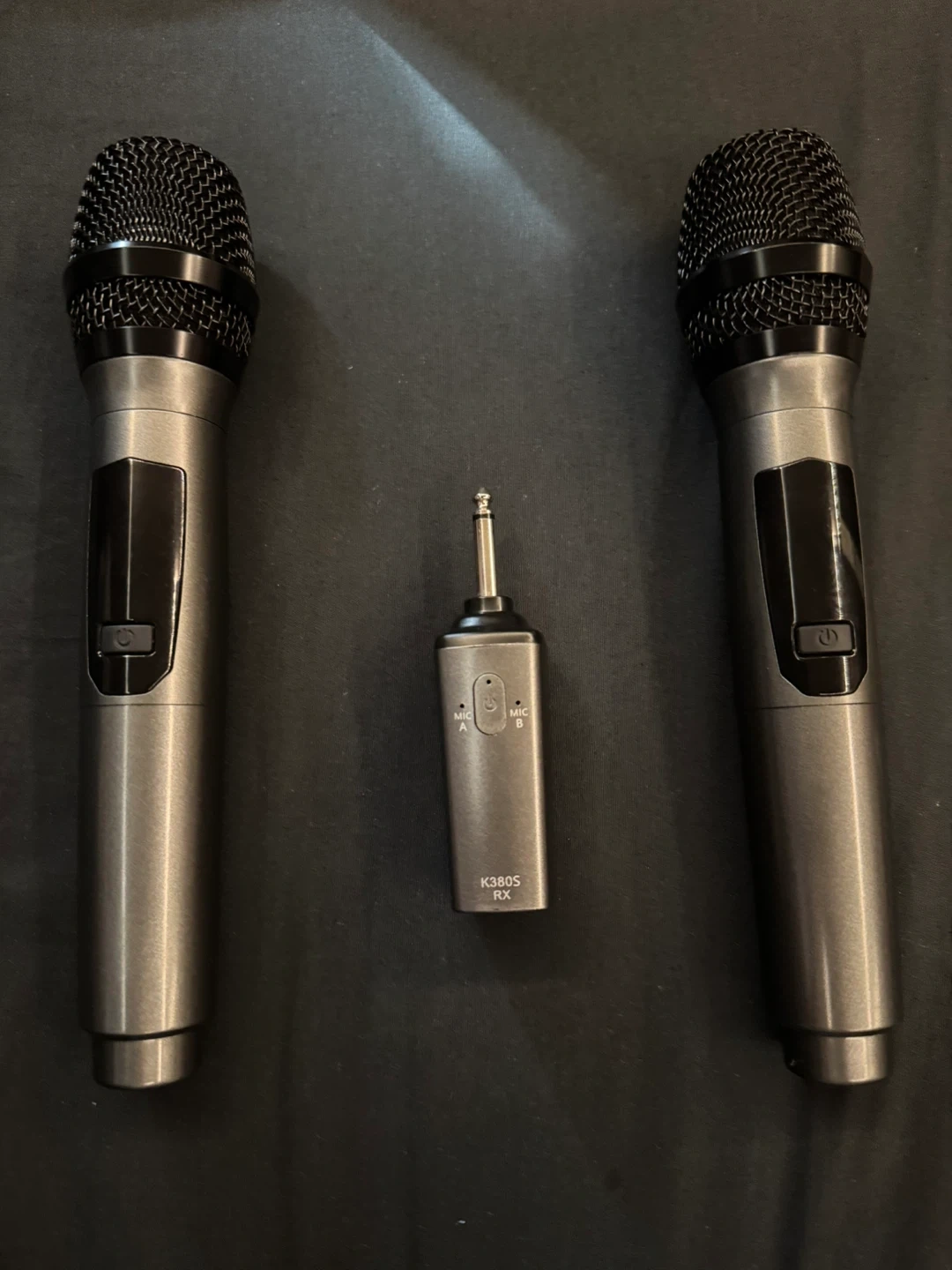 15Selling a wireless microphone system that includes two microphones and a K380S RX receiver. This system is perfect for karaoke or public speaking events. The receiver is compact and easy to set up, making it a great portable option for any occasion