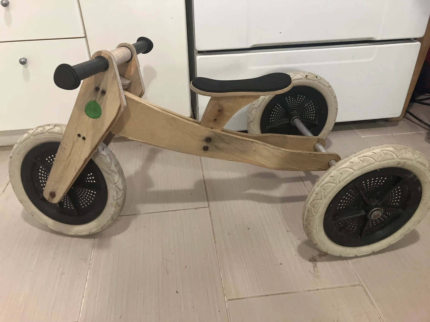 My son outgrown this lovely bike. Very sturdy with adjustable seat height. https://balancebikescanada.ca/wishbone-original-3-in-1-bike/