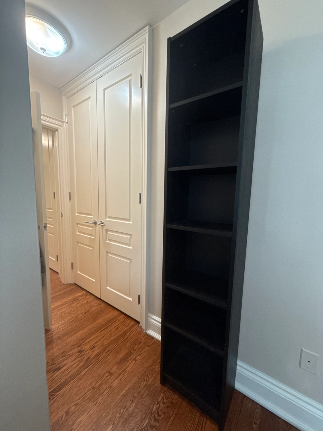 Selling a tall bookshelf in black. It has multiple shelves, perfect for books or displaying items. It's in great shape and ready for a new home!