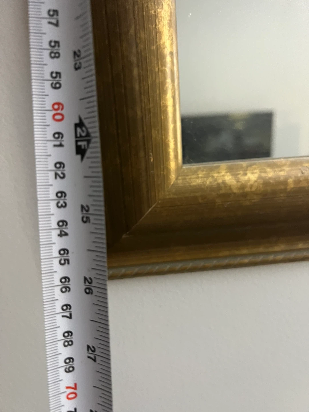 A used vintage-style wall mirror with a decorative gold frame. It's perfect for adding a touch of elegance to any room. The frame has a textured, antique finish.