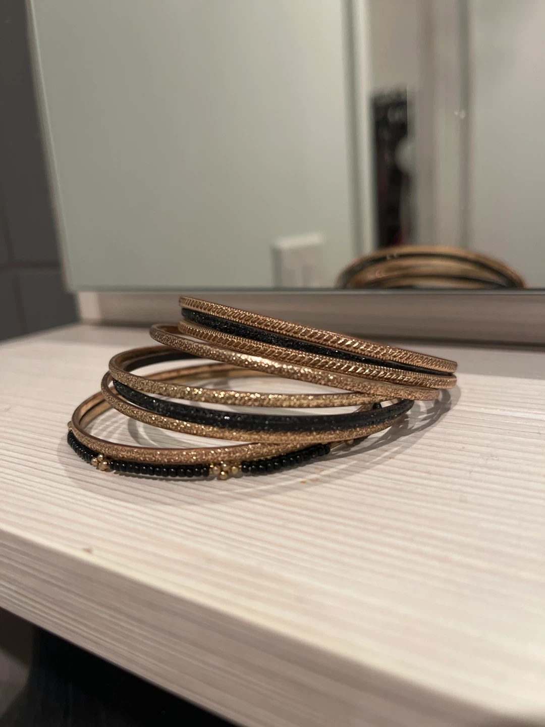 Set of 9 Gold and Black Bangles π