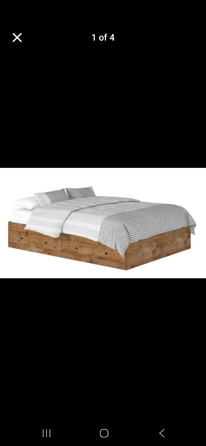Selling a lovely wooden platform bed! It features convenient storage drawers built into the base, perfect for maximizing space in your bedroom. The bed has a warm, natural wood finish that would complement any decor. Dimensions are approximately 62 1/4" x 81 1/8". Box packed