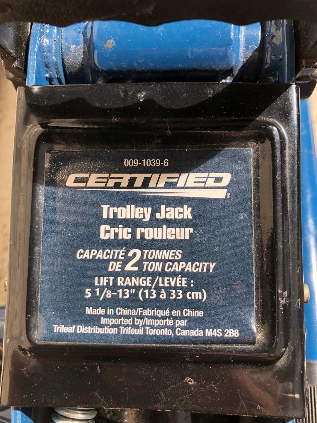 Selling a Certified 2-Ton Floor Jack. It's blue and in good working condition. Great for your garage or auto shop