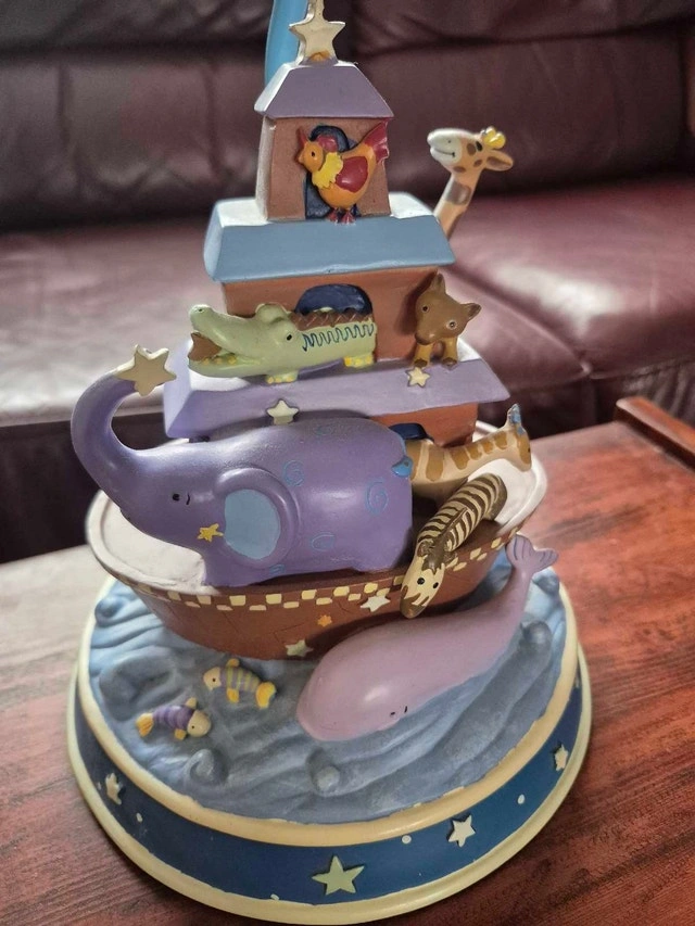 This Noah's Ark kids lamp is very detailed and colourful, featuring many different animals as shown in the photos.