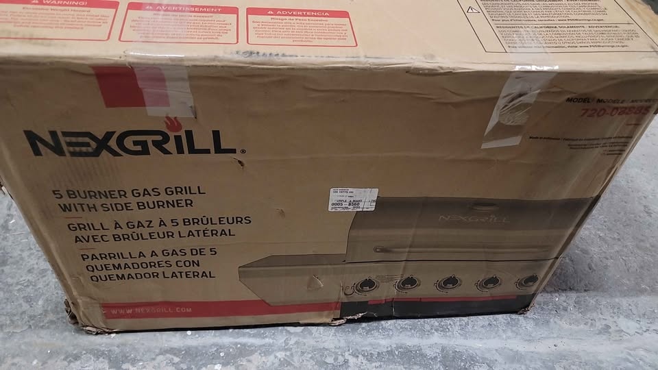 This NEW Nexgrill 5-Burner Gas Grill with Side Burner is crafted from polished stainless steel and porcelain-coated steel materials. With 618 sq. -inch of total cooking space this BBQ offers enough space to cook for small gatherings or large parties. Its even heat cooking system includes stainless steel burners, angled flame tamers and enhanced grates that work together to distribute consistent heat across the entire cooking surface and to reduce grill flare-ups.
