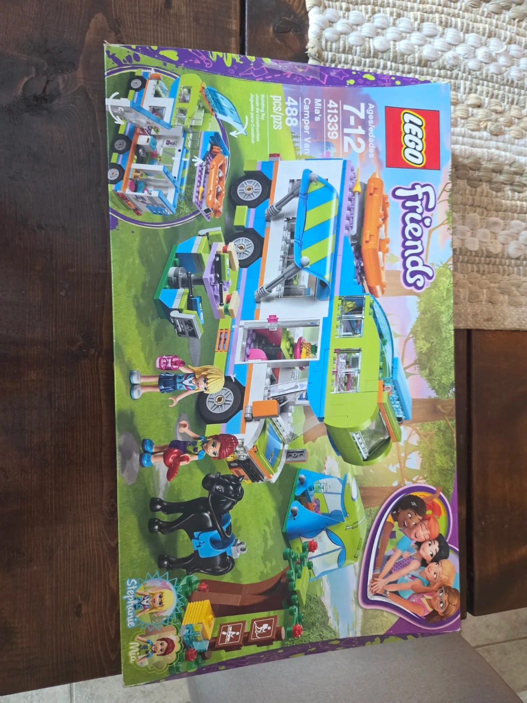 This LEGO Friends set is Mia's Camper Van with 488 pieces. It's designed for ages 7-12 and includes mini-dolls Stephanie and Mia. It's a building toy for creative play.