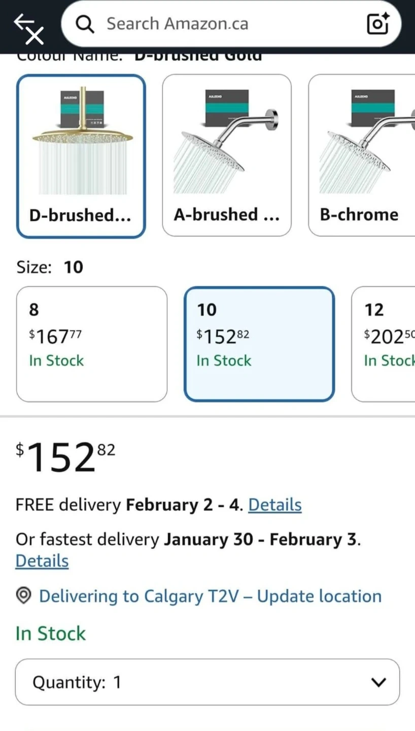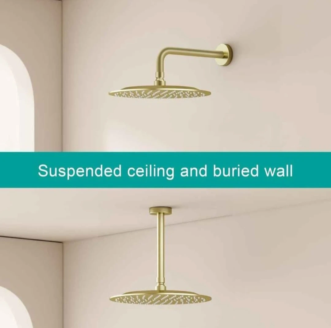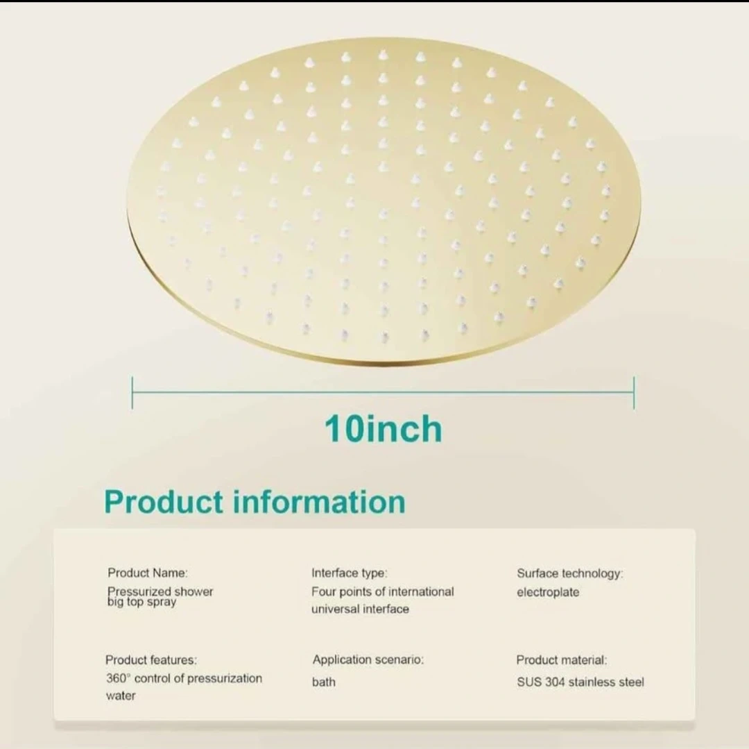 Rain Shower Head Round Shower Head, High Flow Stainless Steel Rainfall Shower Head, High Pressure Design (D-Brushed Gold, 10)