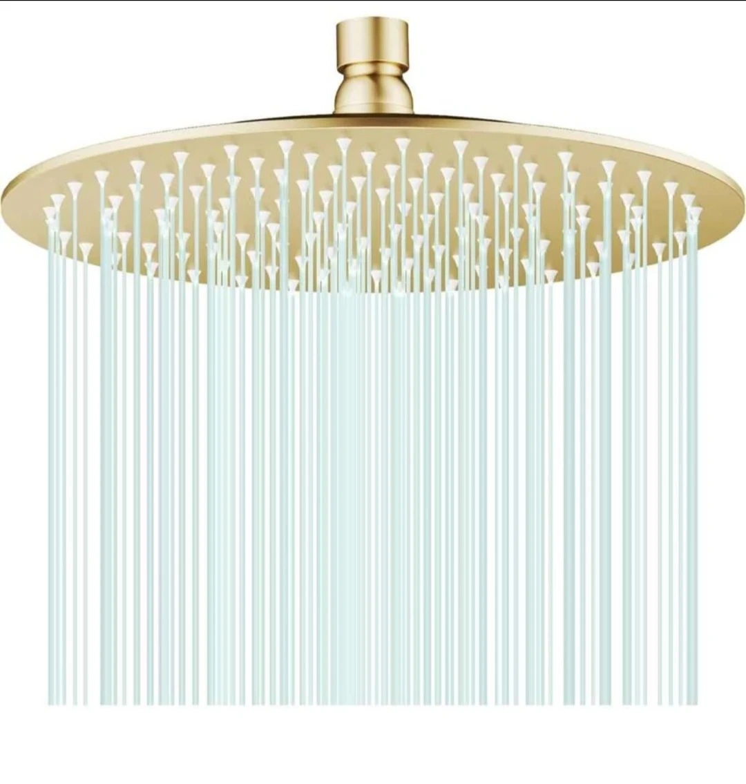 Rain Shower Head Round Shower Head, High Flow Stainless Steel Rainfall Shower Head, High Pressure Design (D-Brushed Gold, 10)