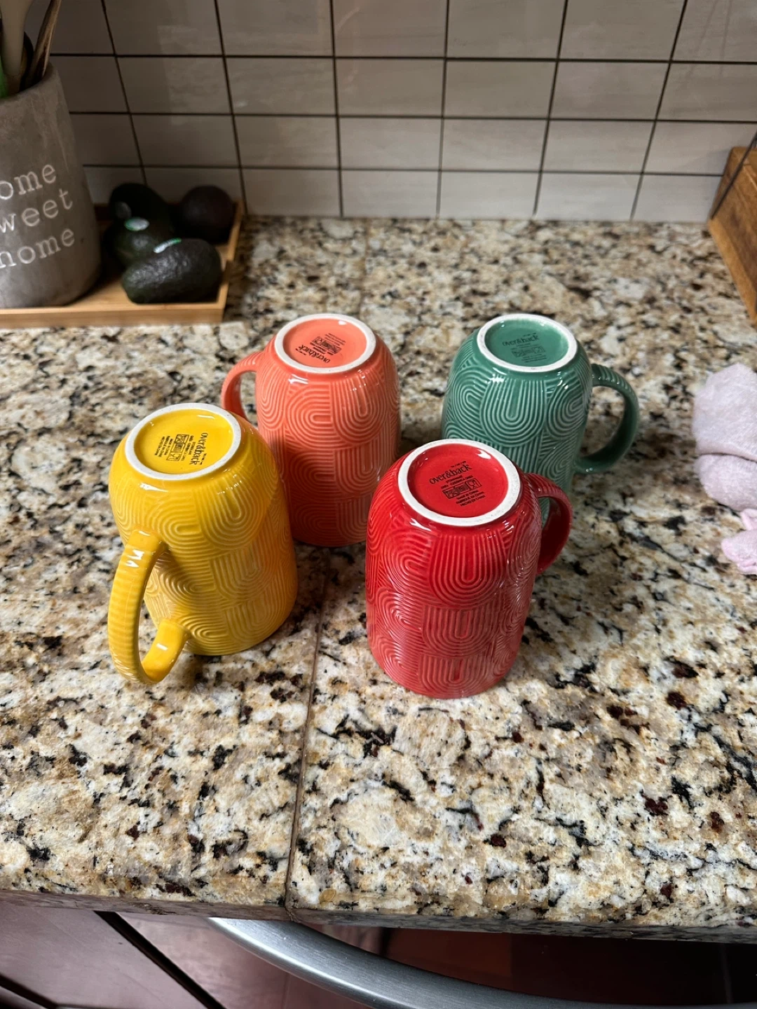 Set of 4 Textured Mugs - Yellow, Coral, Teal, Red
