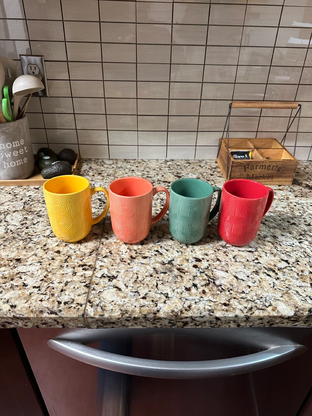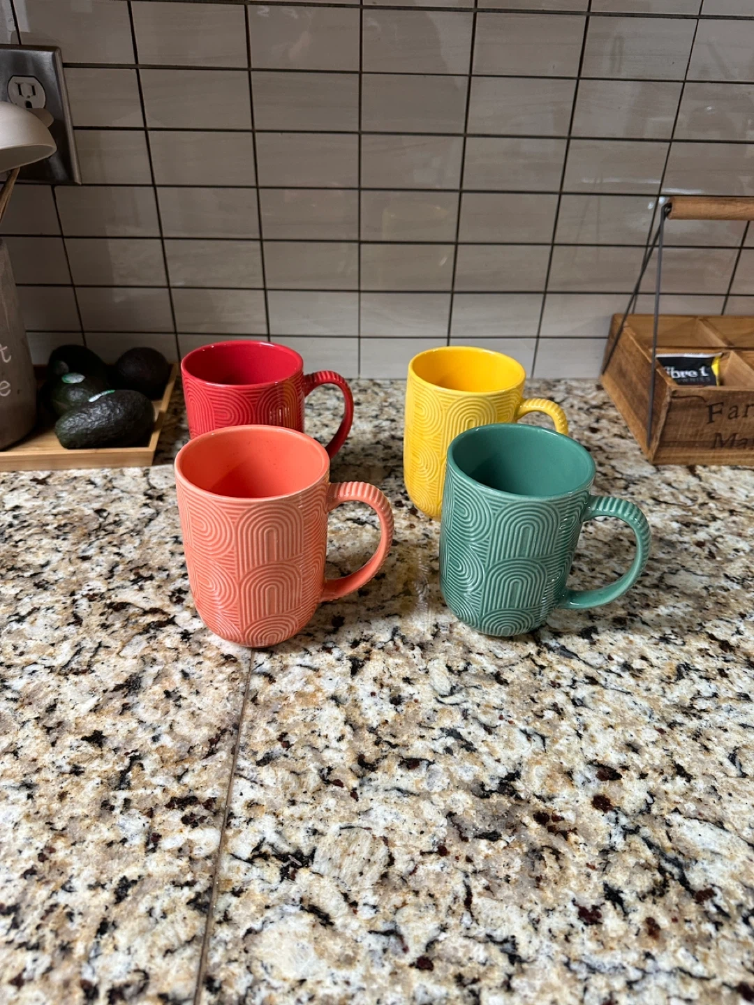Set of 4 Textured Mugs - Yellow, Coral, Teal, Red