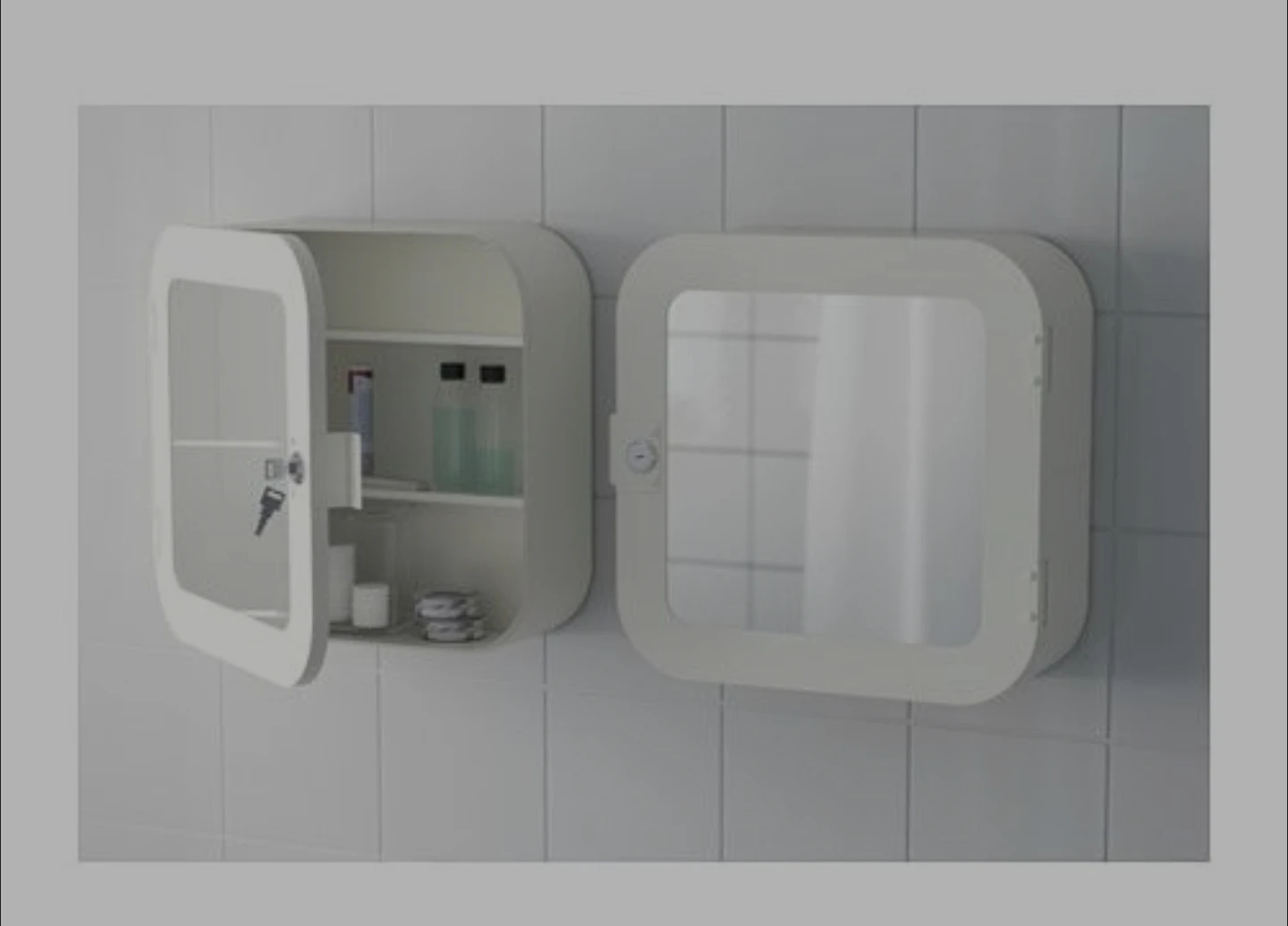 This wall-mounted medicine cabinet features a mirrored door and internal shelves. It comes with a key lock for added security. The cabinet's clean white finish complements most bathroom decors. It's handy for organizing medications and toiletries!