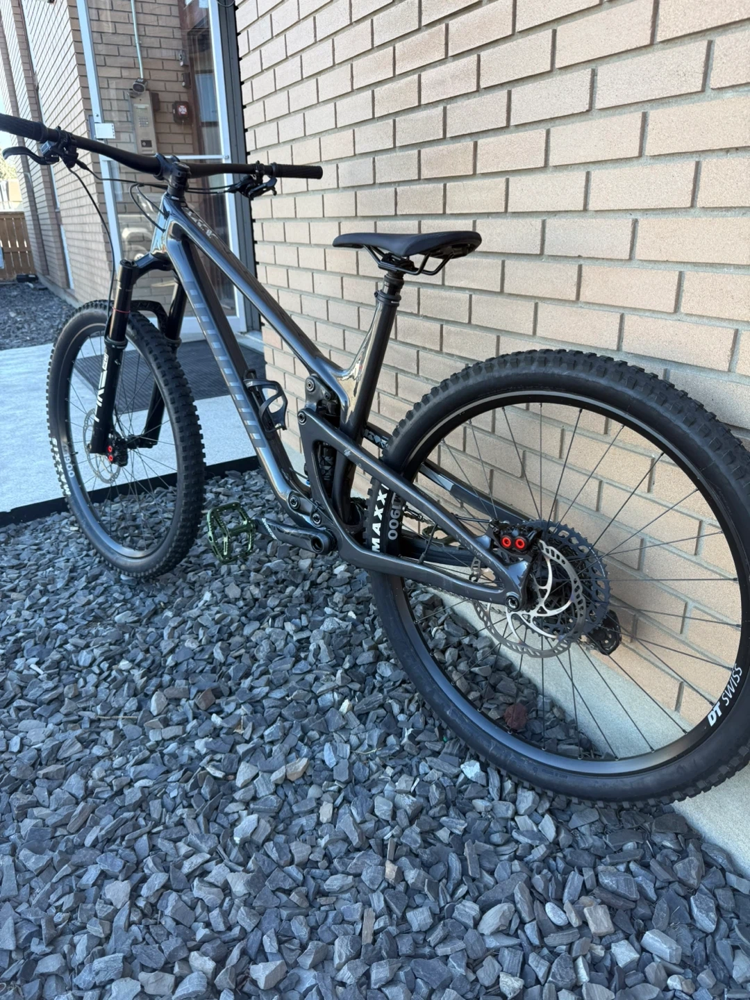 Propain Hugene C2 XL frame size with maybe 10 hours of riding on it. Purchased last year but ended up primarily using my other bike. Super light built to climb and handles anything I threw at it in my limited rides.
