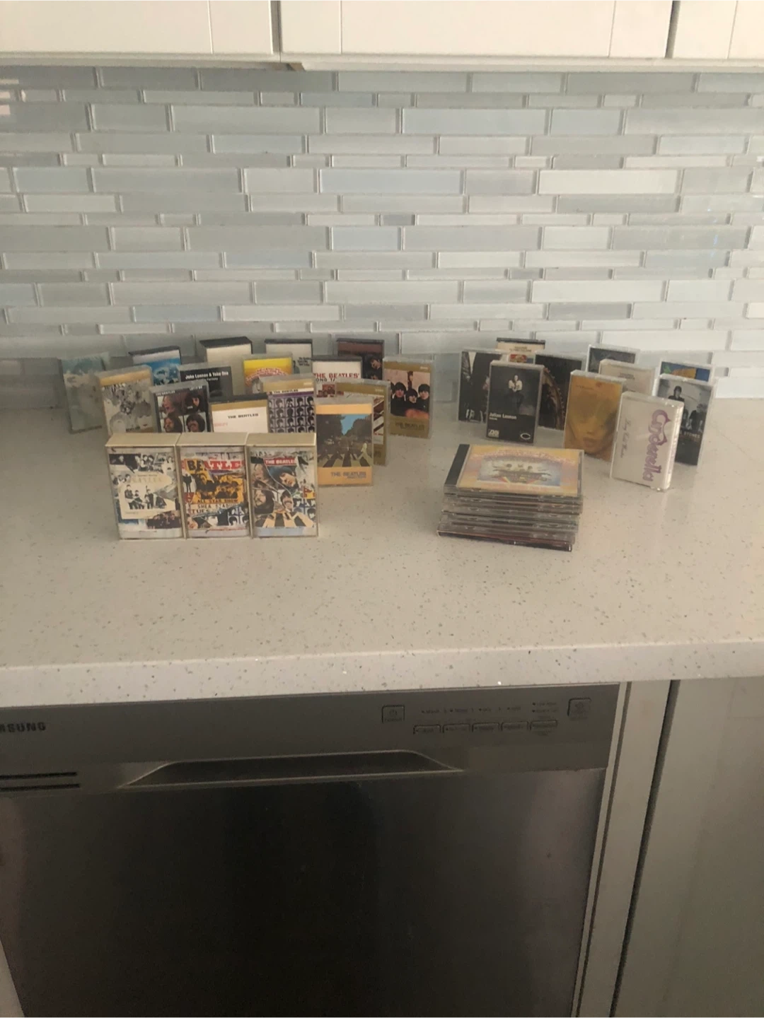 A collection of The Beatles music on CD and cassette tapes. Includes various albums. Great for any fan looking to own a piece of music history other variety artists on cassette and cd 38 in all