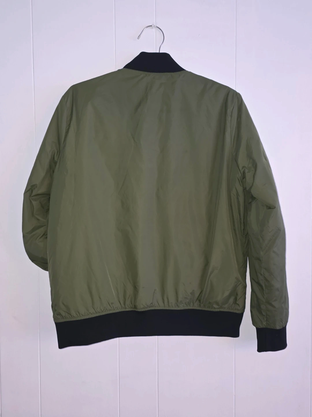 Selling a JustFab bomber jacket in olive green! It's a stylish and lightweight jacket, perfect for layering. The jacket features a zip-up front and ribbed cuffs and hem.