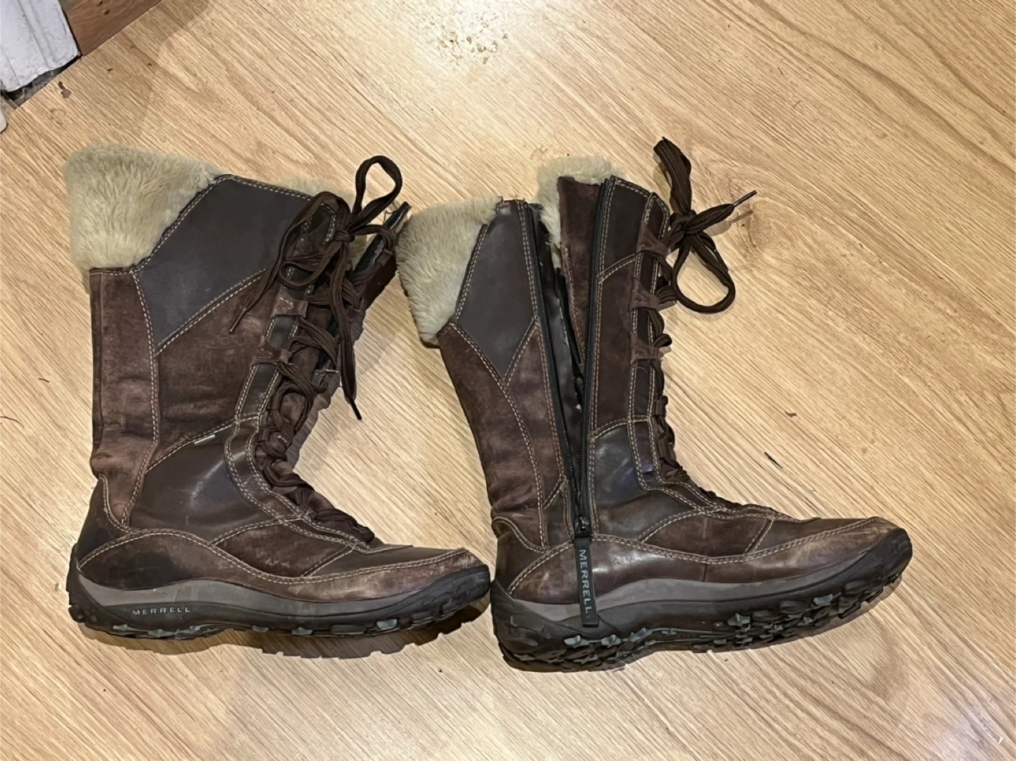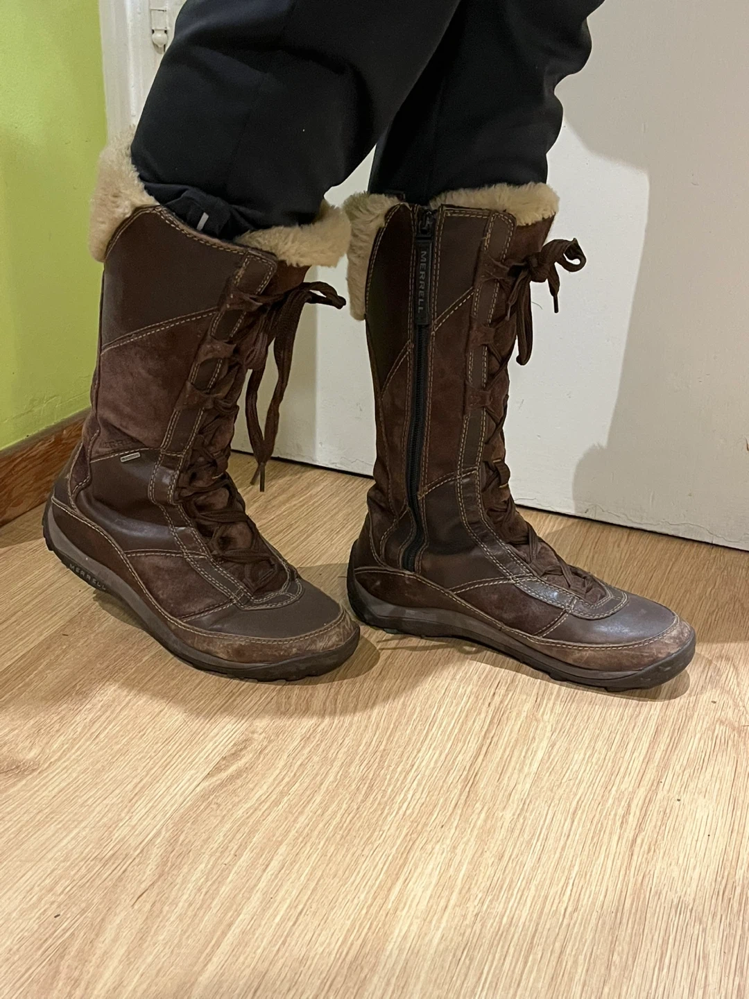 Selling a pair of waterproof Merrell snow boots/winter boots. Bought by accident size is too big for me. They go up to below the knee. They are warm, comfy and cozy for those winter days and nights.