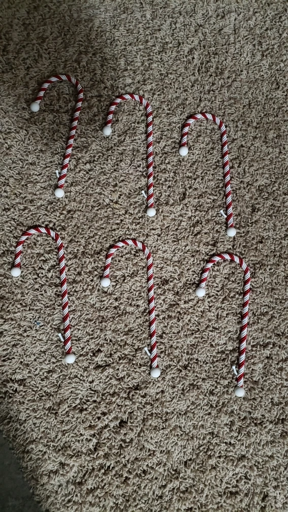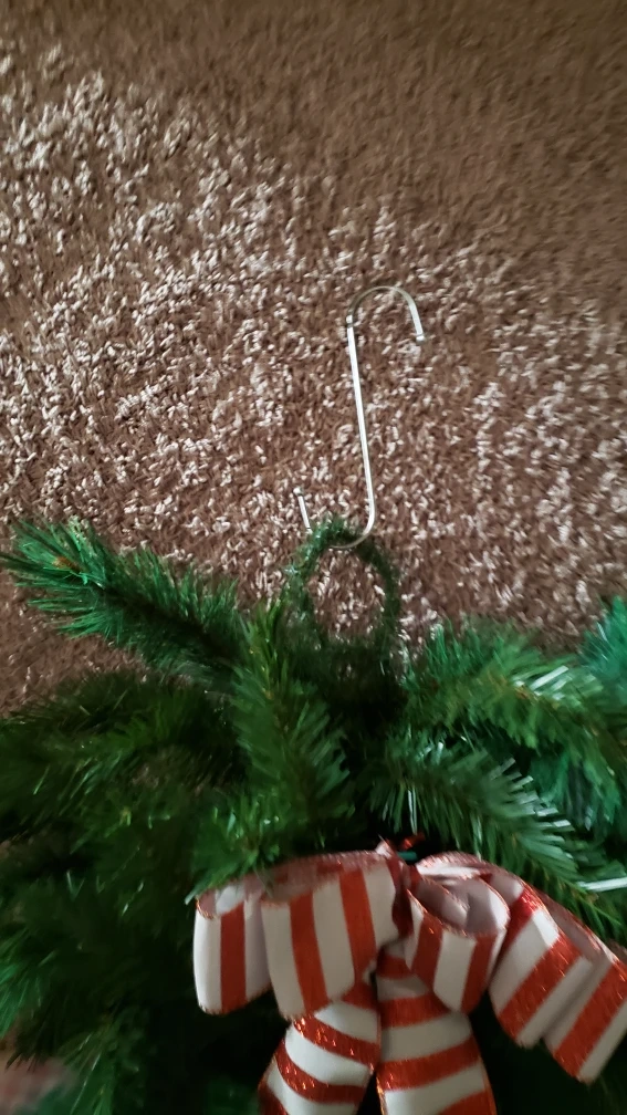 2 Teardrop Swags and 3 -Christmas Wreaths 11 in round and 13 in round and 18 in round.6 Candy Cane Hooks.