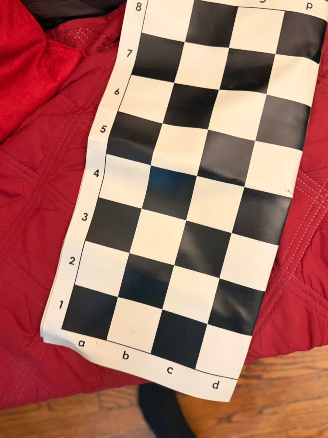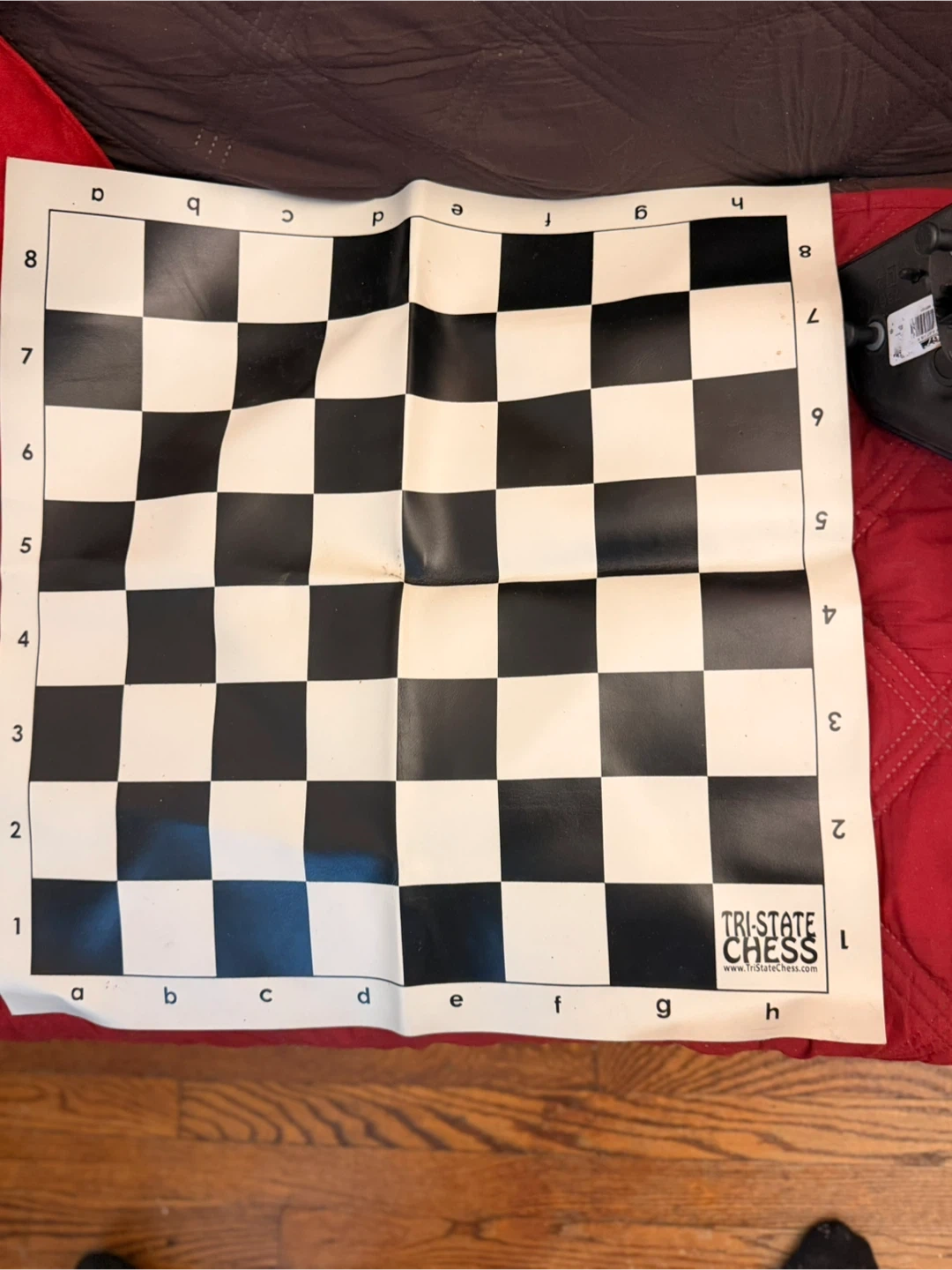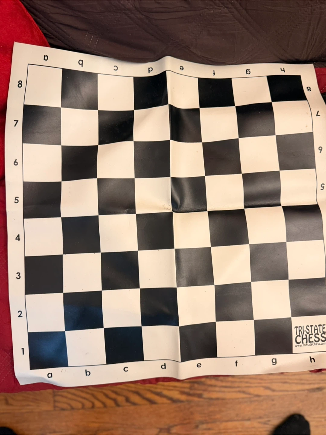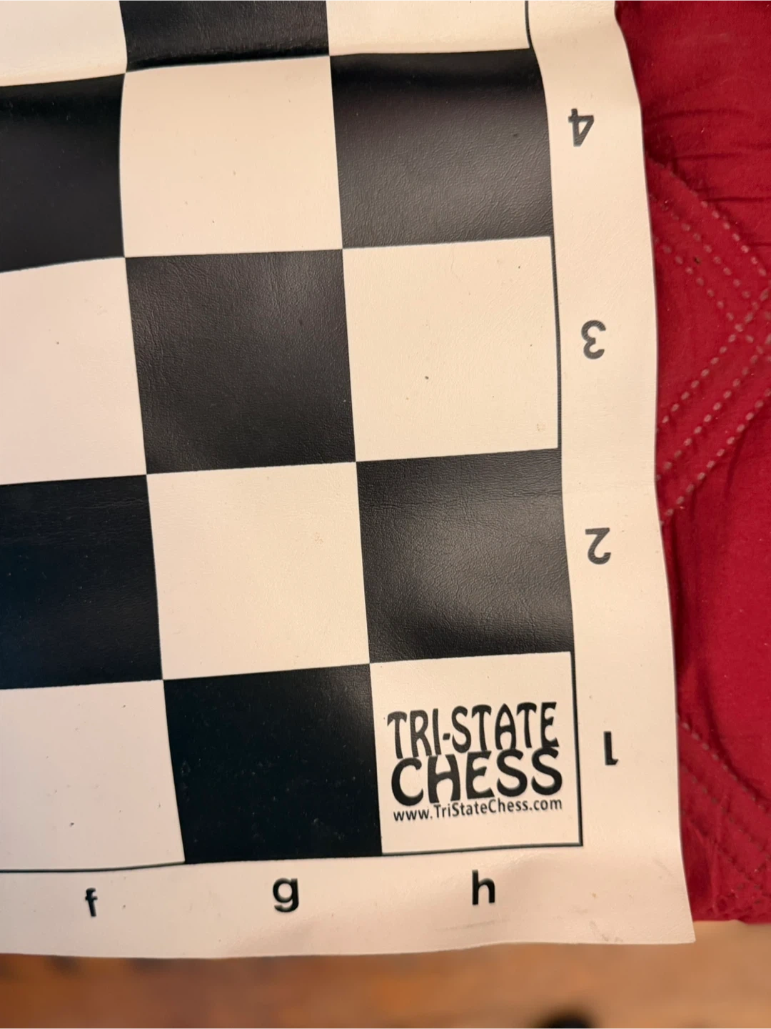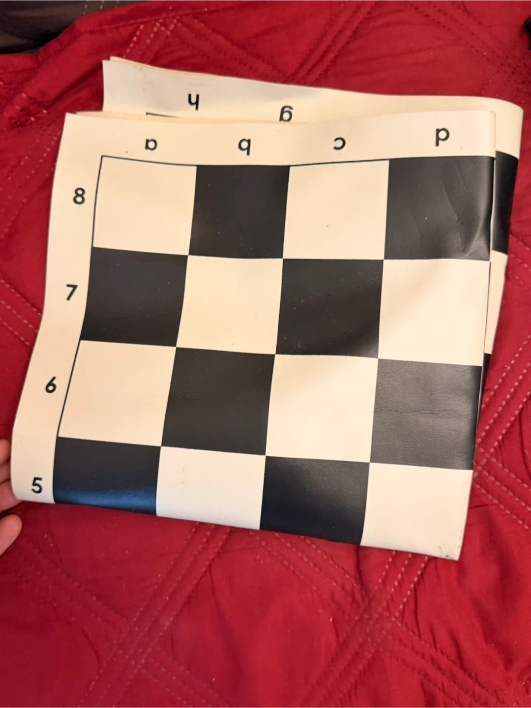 This is a standard 8x8 vinyl chessboard with algebraic notation. It's lightweight and foldable for easy storage. Great for casual games or tournament practice!