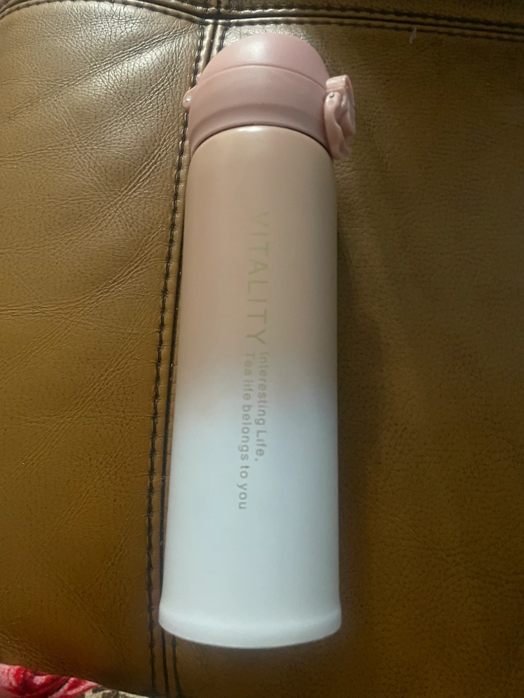 This Vitality tumbler is great for keeping drinks hot or cold. It has a secure flip-top lid and a fade-resistant design. This tumbler is perfect for taking beverages on the go!