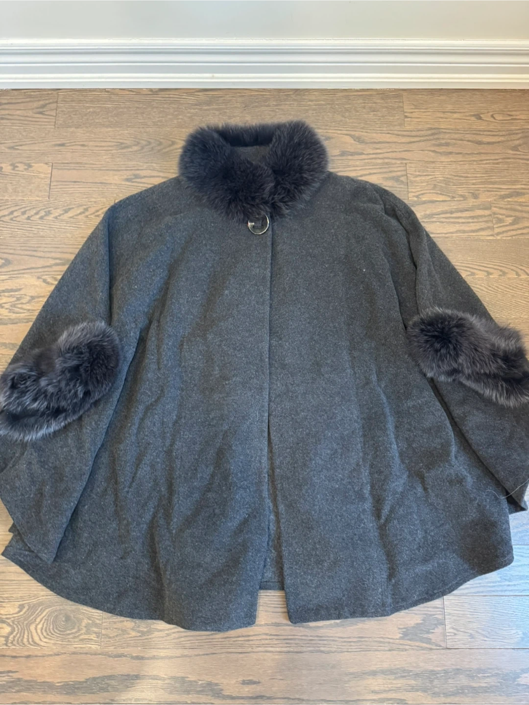 Grey Cape with Fur Trim size large