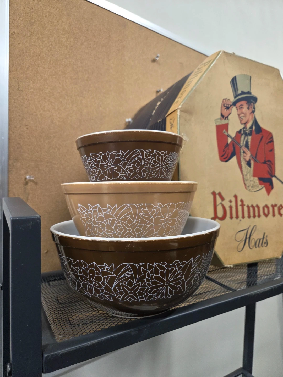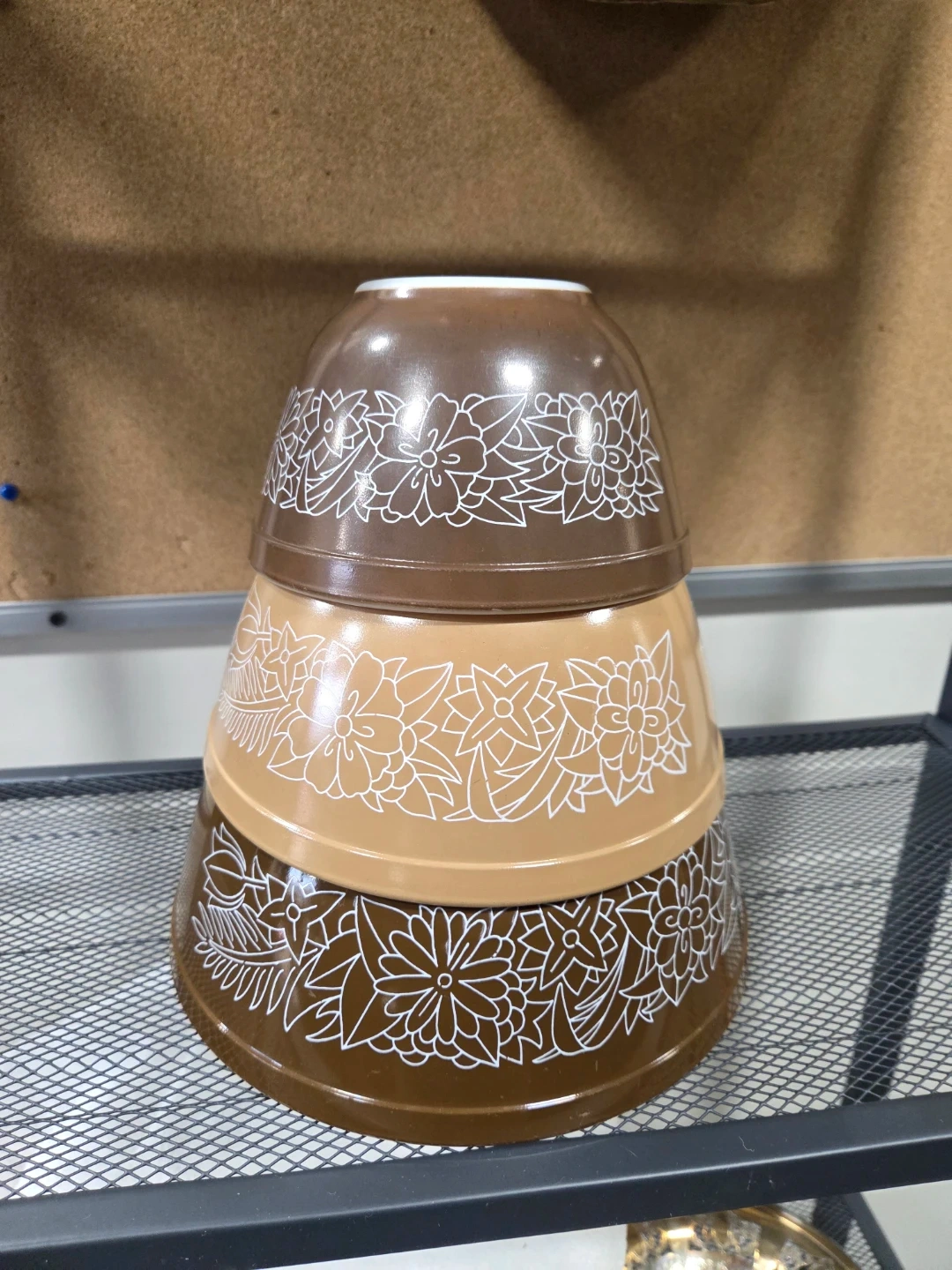 Pyrex Mixing Bowls Set - chocolate woodland Floral Pattern