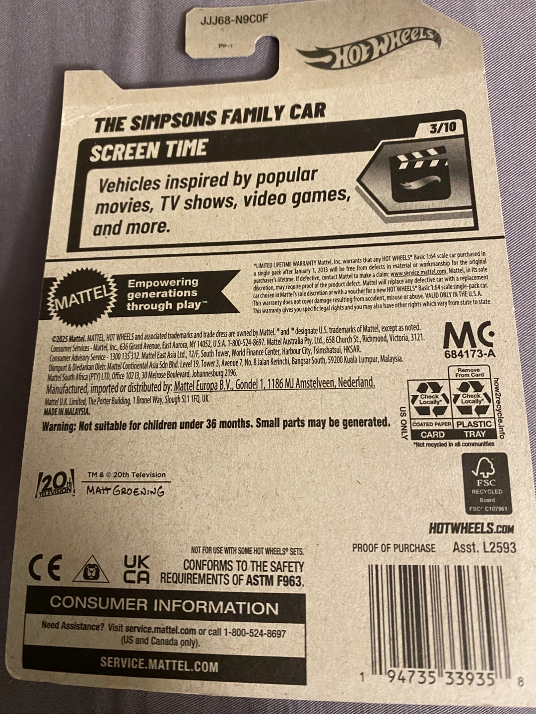 Hot Wheels The Simpsons Family Car 'Screen Time' die-cast vehicle. Features Matt Groening's signature and is from the 2023 collection. Vehicle inspired by popular movies, TV shows, video games, and more.
