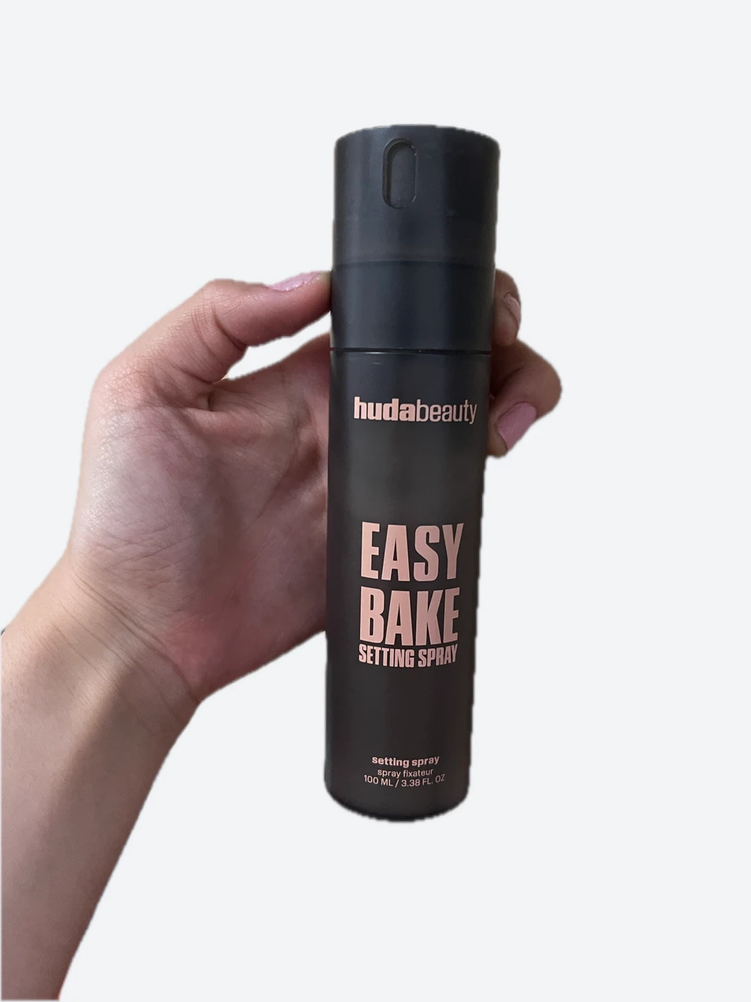 Selling Huda Beauty Easy Bake Setting Spray. This formula offers all-day transfer and sweat proof makeup, locking it in for 16 hours. Shake to activate and spray to blur for a flawless finish. A must-have for your makeup bag!