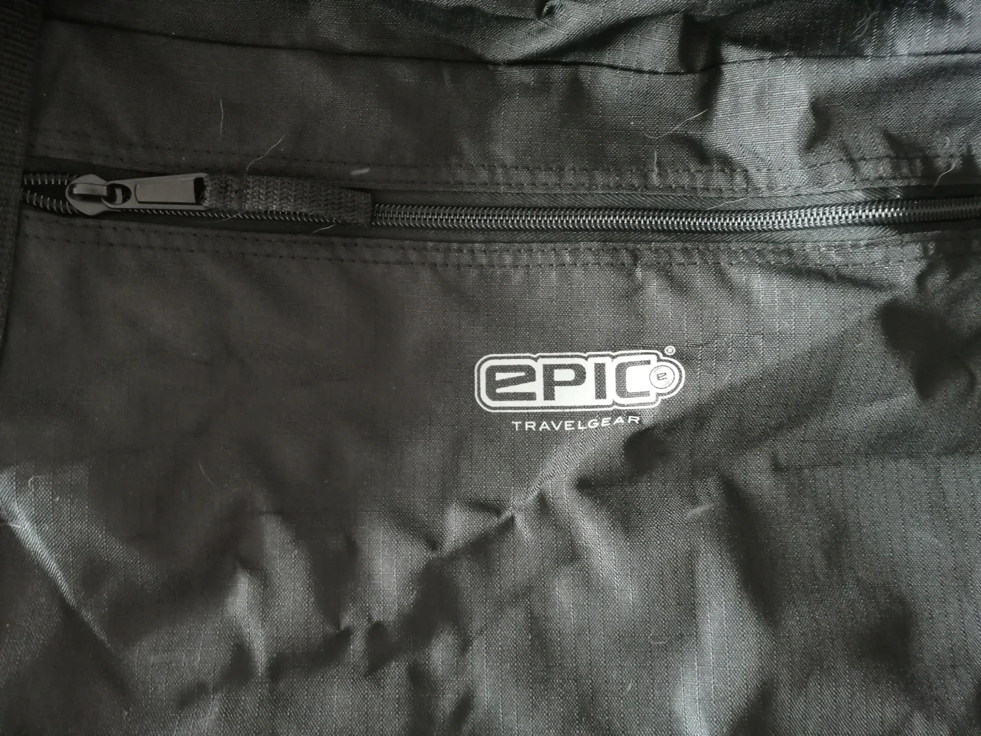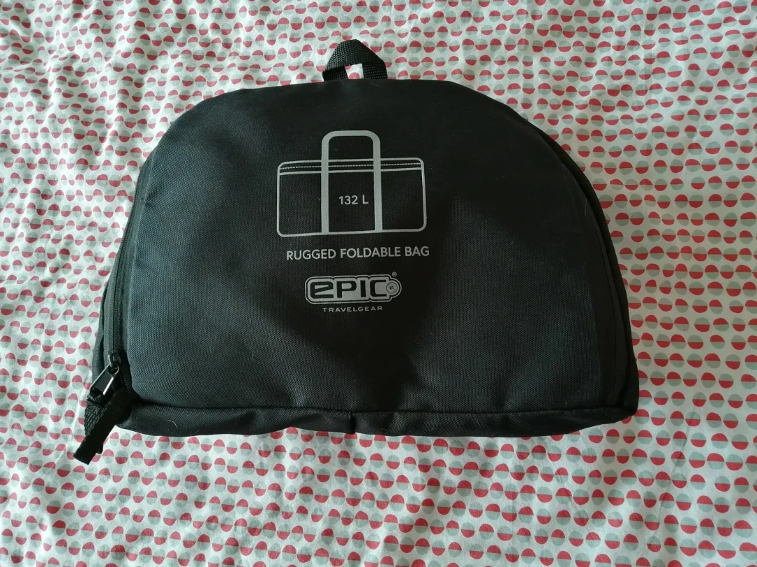 Here's a black Epic Travelgear rugged foldable bag. It's a spacious 132L bag, perfect for travel or storage. It's in great condition and ready for its next adventure!