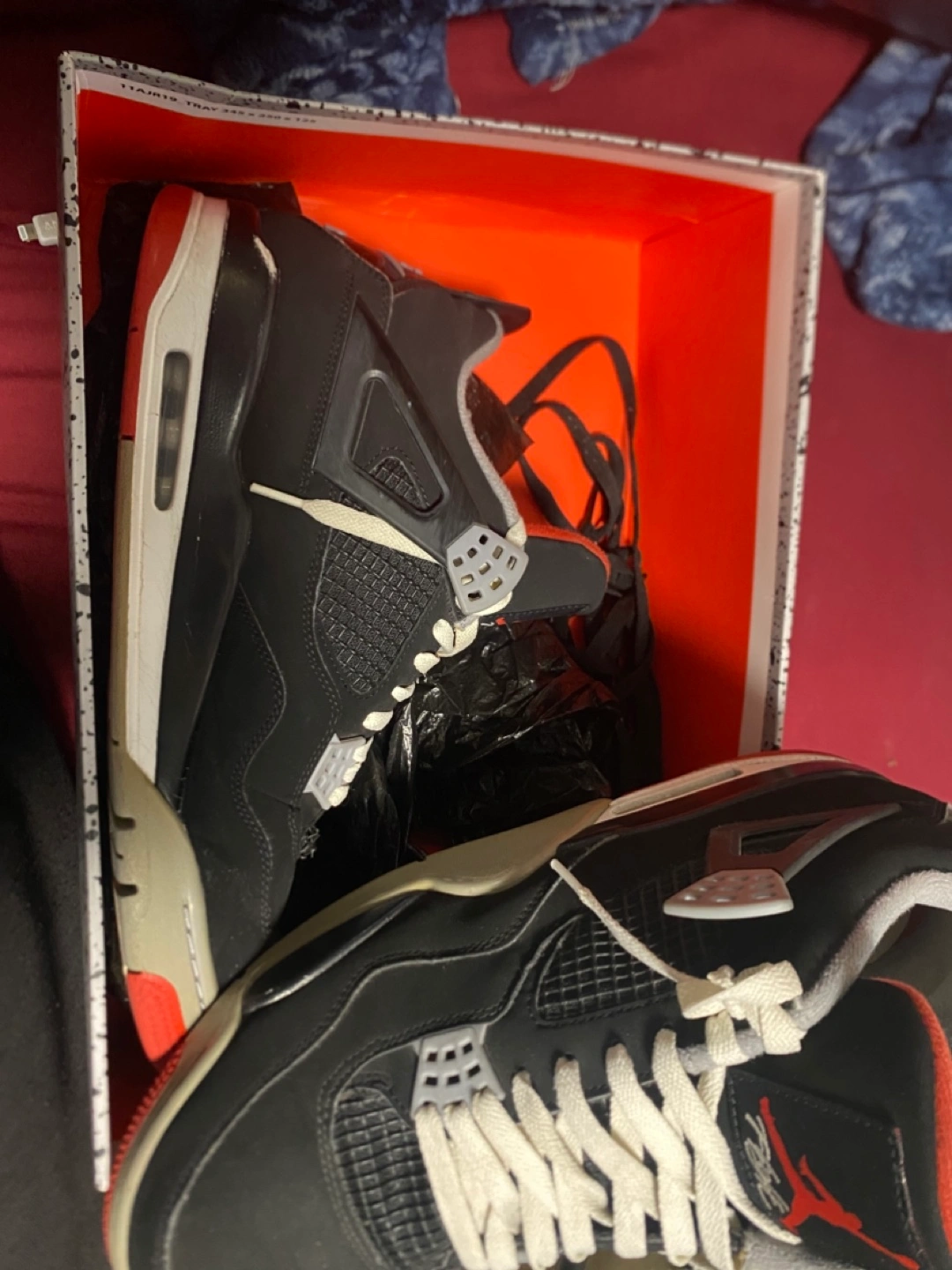 Selling a pair of Air Jordan 4 Retro in the Bred colourway. They show some signs of wear, as you can see in the photos, but they still have lots of life left. Comes with the original box!