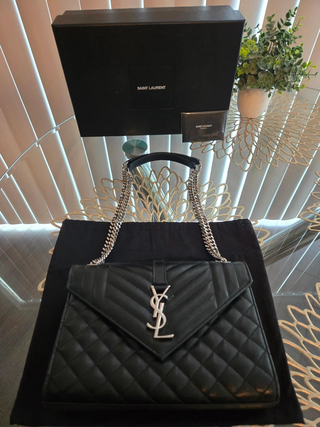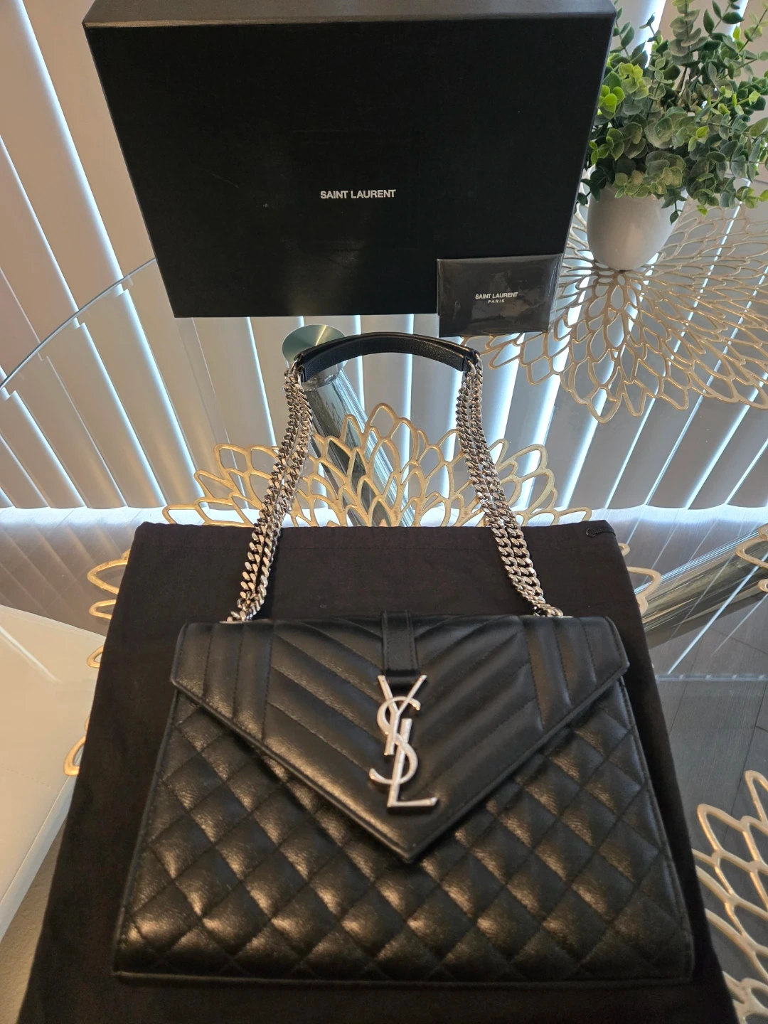 Selling a beautiful Saint Laurent Medium Envelope chain bag! It's in great condition and comes with the original box and dust bags. Silver chain and Iconic YSL logo.