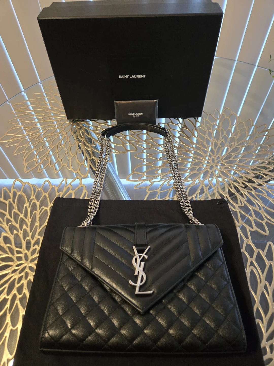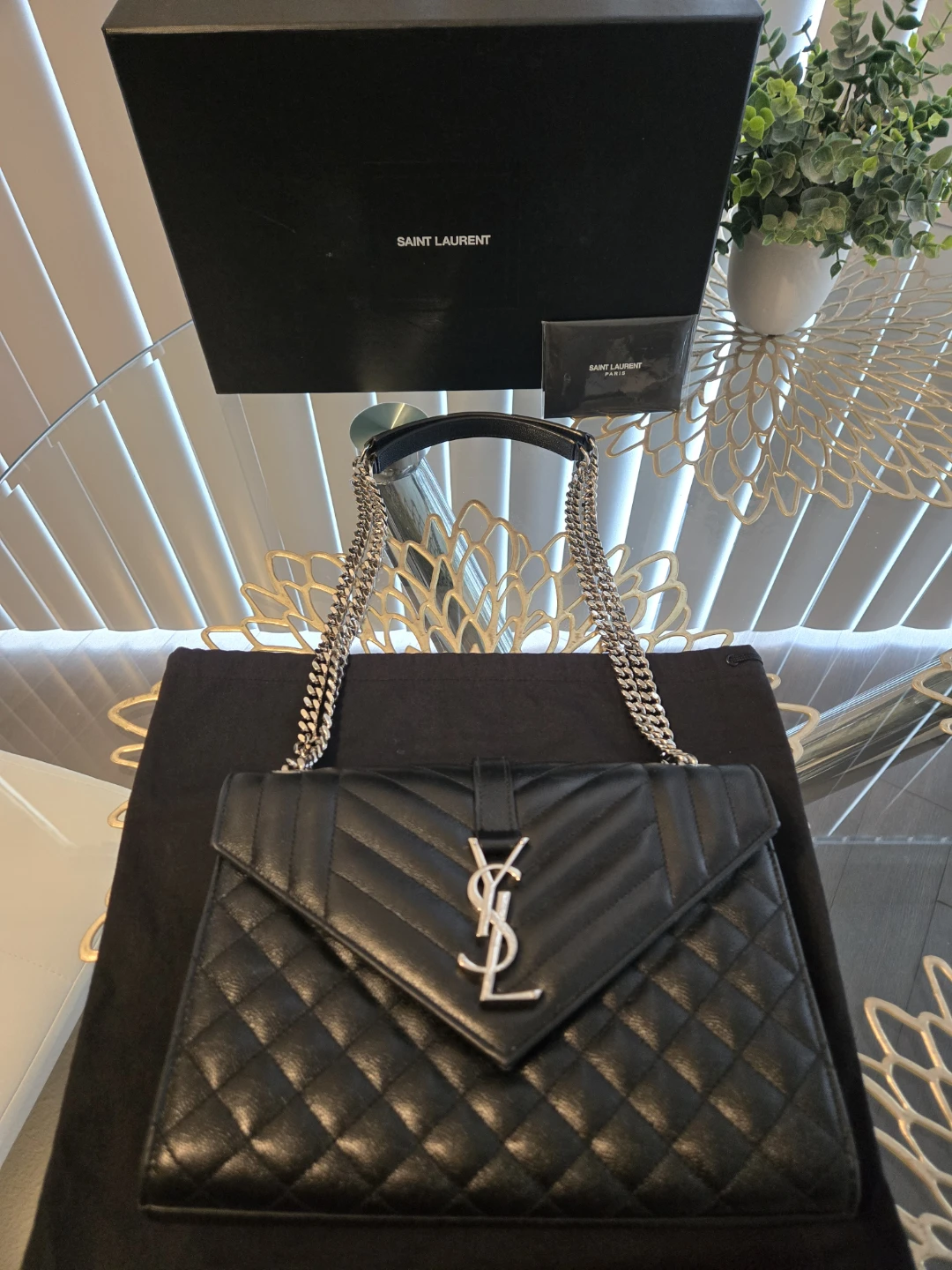 Selling a beautiful Saint Laurent Medium Envelope chain bag! It's in great condition and comes with the original box and dust bags. Silver chain and Iconic YSL logo.