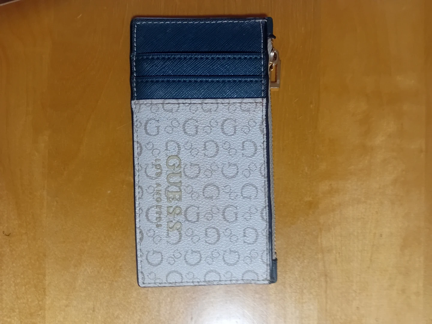 This Guess card holder wallet is in great condition! It features a stylish green, white and gold design with the Guess logo pattern. Perfect for keeping your cards organized and secure.