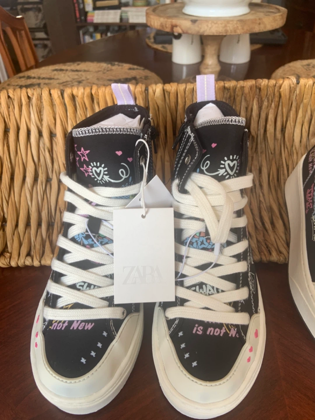 ZARA Black High Top Graffiti Sneakers