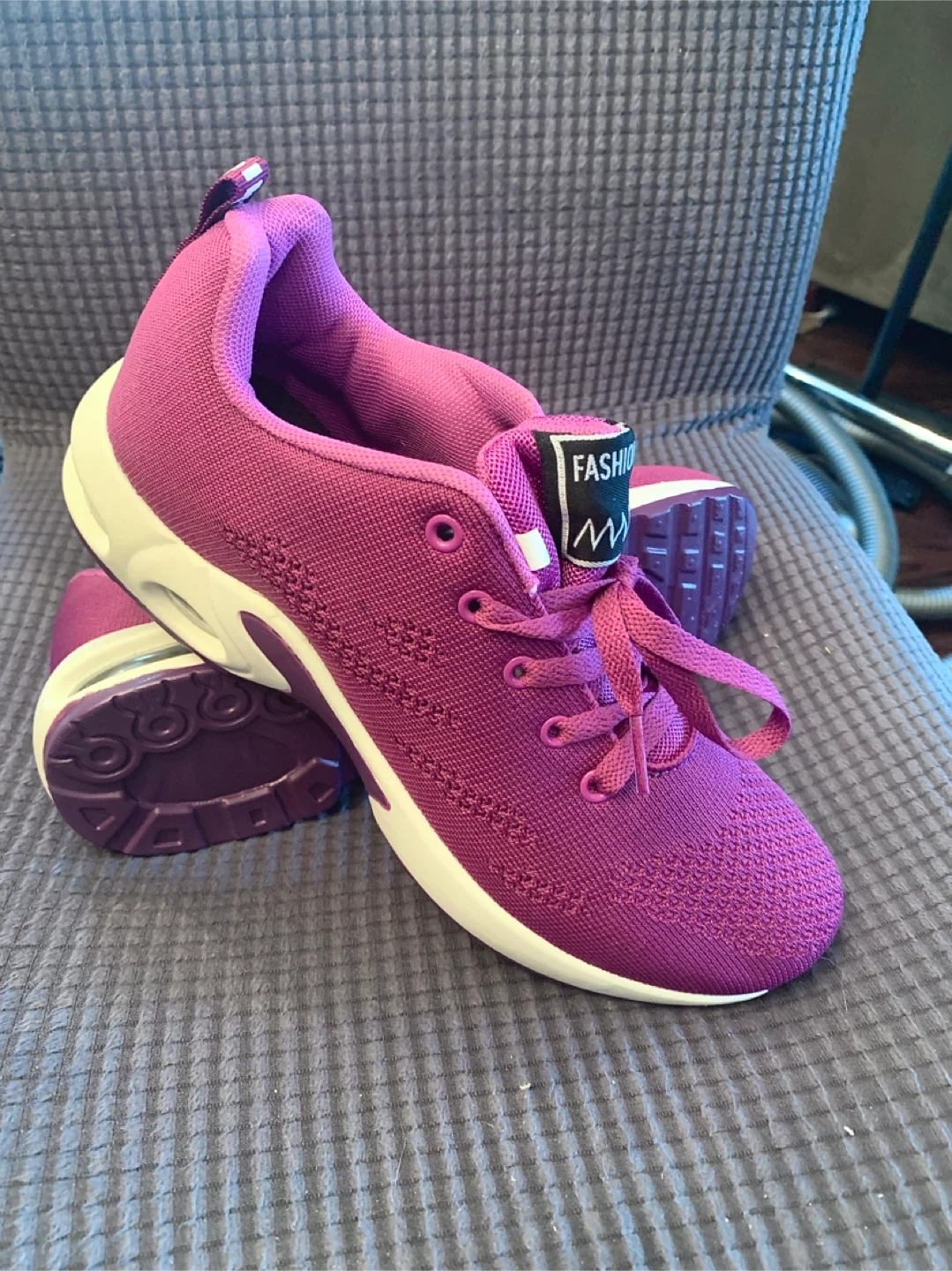 10These Öwlkay fashion sneakers are a vibrant purple colour! They feature a comfortable design, perfect for everyday wear. The bag says, "It's like walking on cloud", so you know they're comfy!