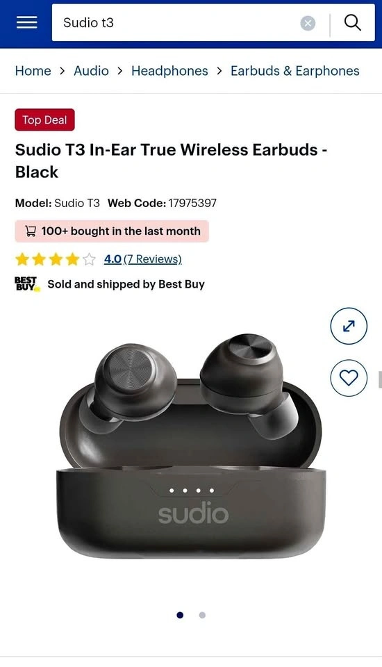 NEW IN BOX Sudio T3 In-Ear True Wireless Earbuds - Black