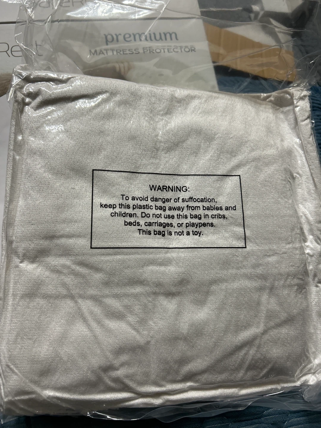 This is a Brand New-SafeRest premium mattress protector. It's designed for a queen-size bed. The protector measures 60 inches by 80 inches by 18 inches. It guards against fluids, dust mites, and bacteria.