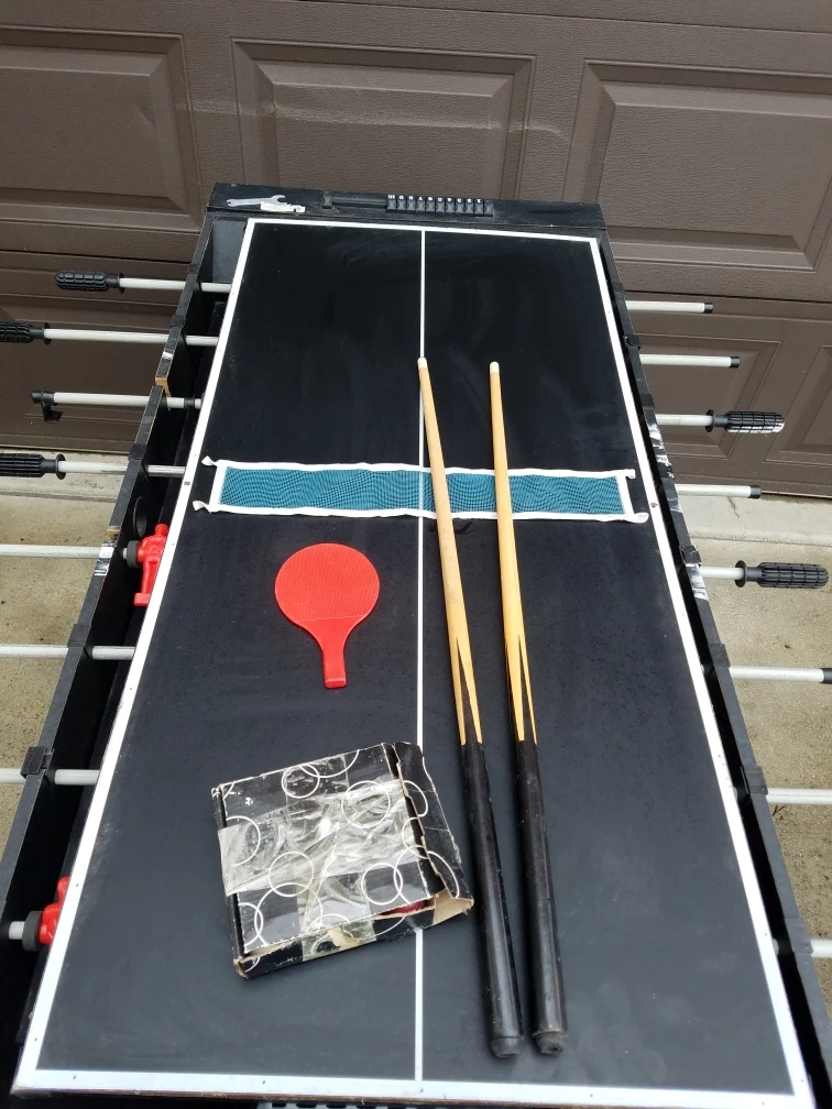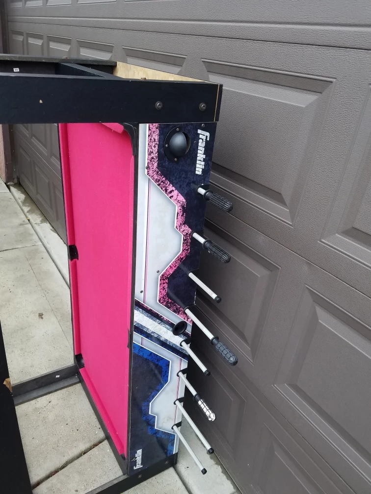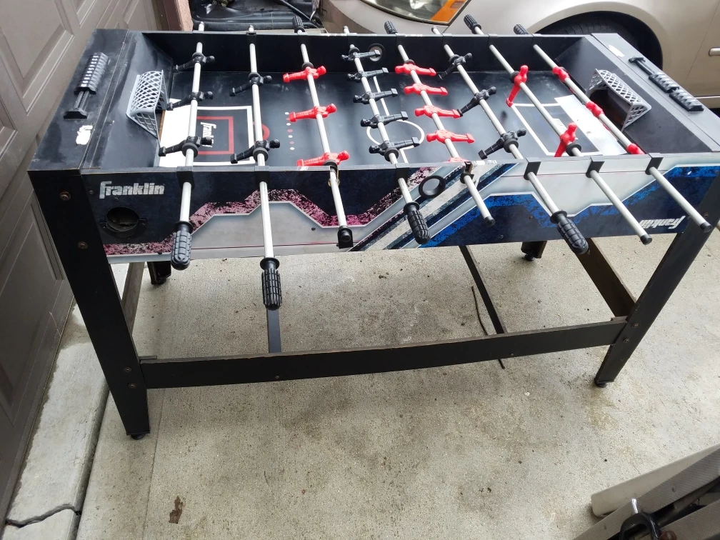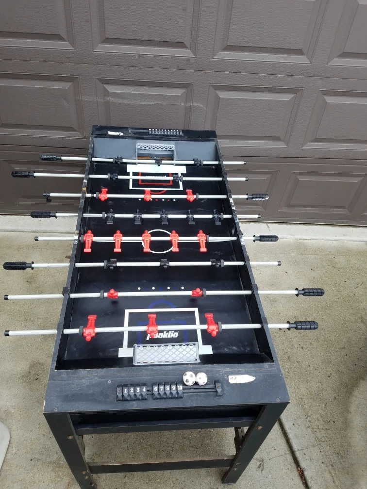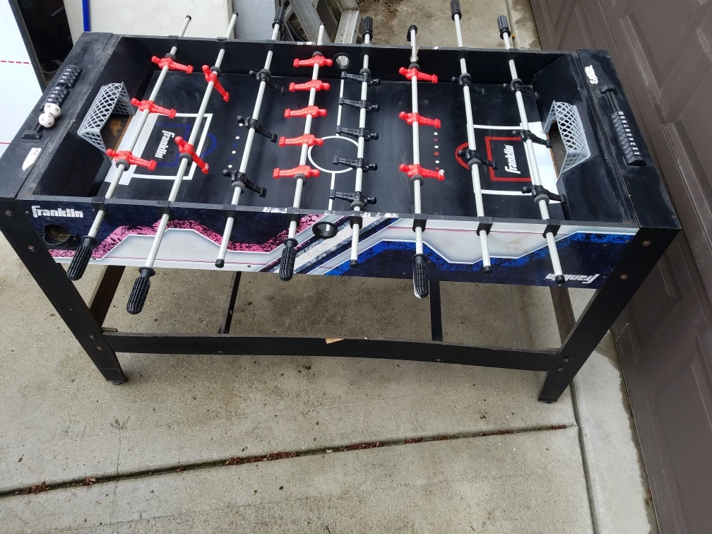 Used Franklin Sports foosball and air hockey table. Includes all players and accessories. Great for game room or basement.