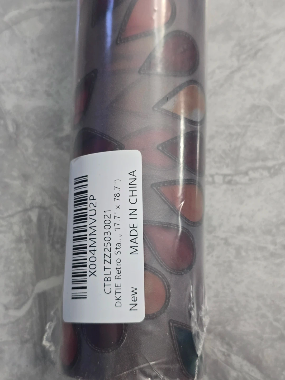 Retro style wallpaper with a pear drop pattern. Dimensions are 17.7" x 78.7". This wallpaper is self-adhesive and easy to apply.