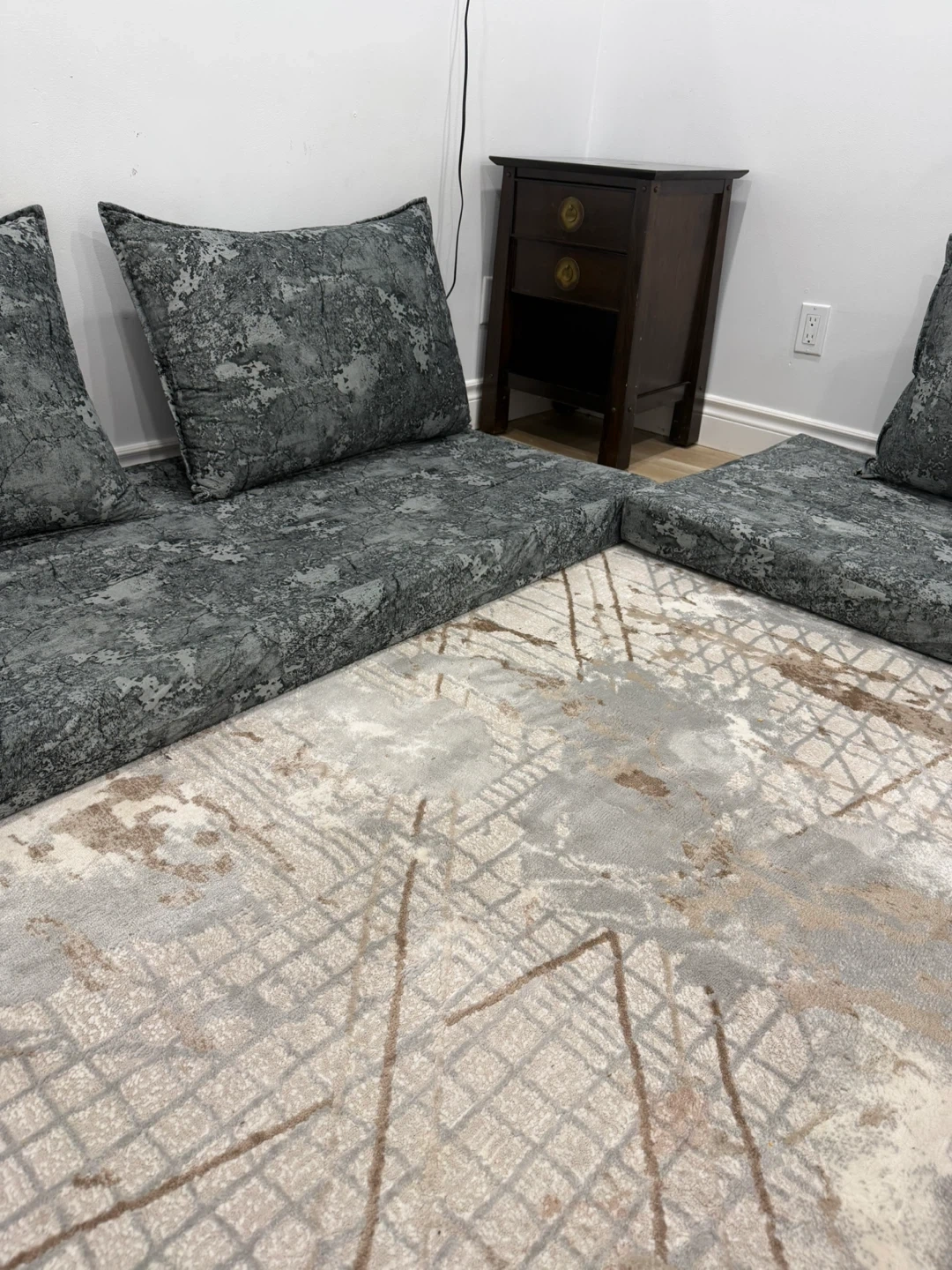 Grey Floor Cushion Set with 2 Pillows