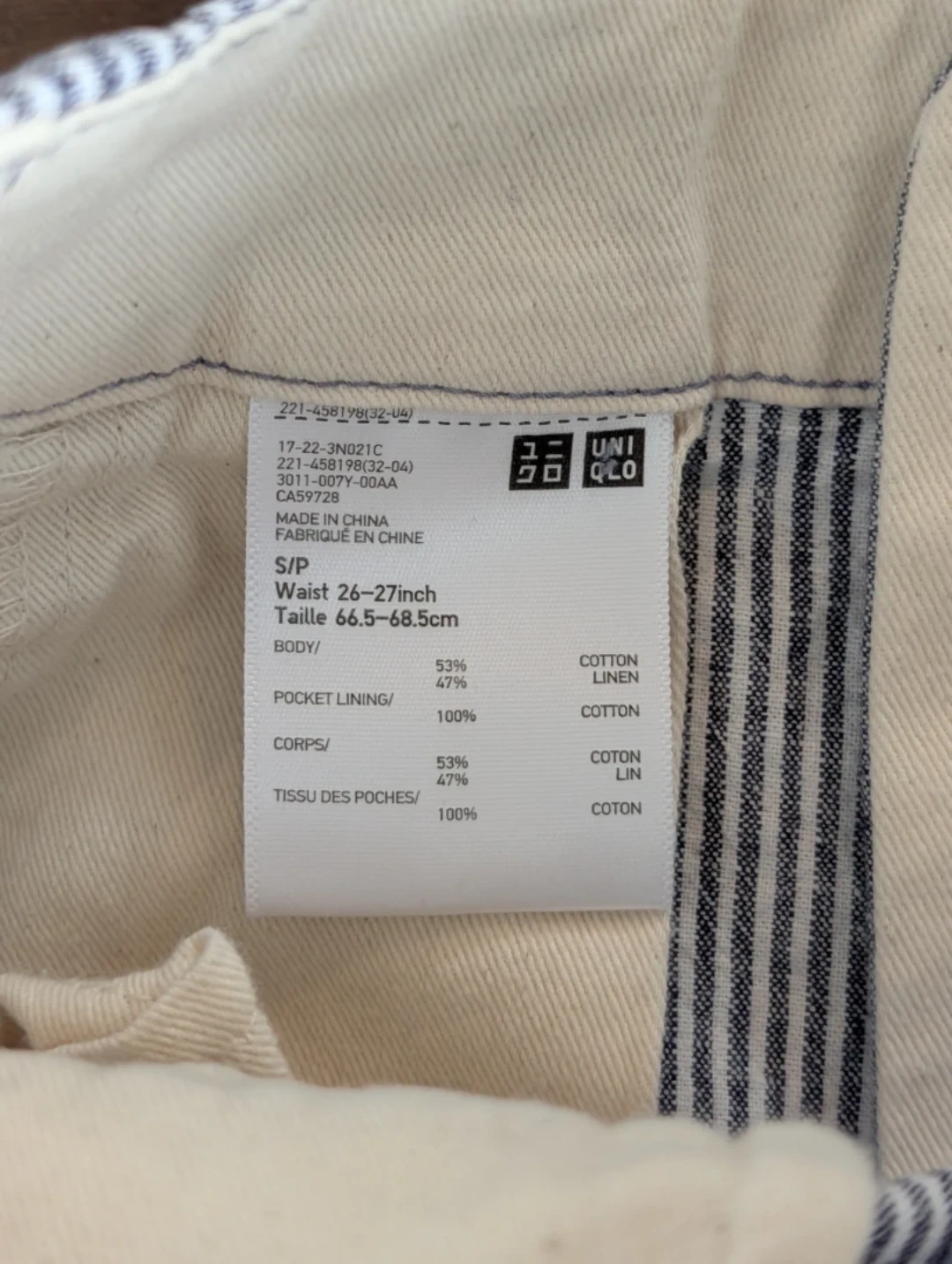 Uniqlo Blue Stripe Cotton Linen Pants