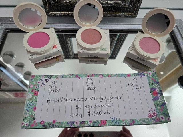 These gorgeous shimmer pigments can be used for eyeshadow, highlighter, or blush. They are highly versatile, blendable, and long-wearing. Check out these pop of colours! They are only $5.00 each. I only have 1 or 2 of each of these popular shades left, so grab them while you can. Pick up in the Grantham/Carlton area. From a very clean, smoke-free home. Please see my other ads, thank you.