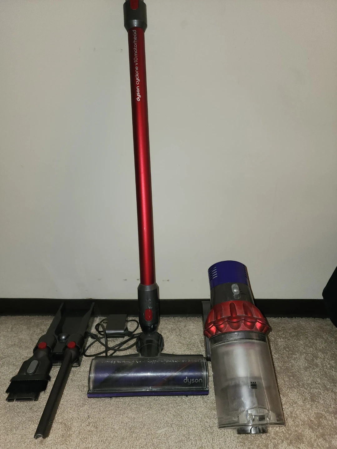 Buy & SellDyson Cyclone V10 Motorhead Cordless VacuumDyson Cyclone V10 Motorhead Cordless Vacuum$150This Dyson vacuum is red and silver. It's a cordless model with a digital motor. Includes crevice tool and brush tool.ConditionLike newBrandDysonWHERE TO MEETCheck LocationView MapSELLERverifiedDanielPolo Park812 reviews0 chats·0 favorites·22 viewsSEND CHAT TO SELLERHi Daniel! I’m interested in your listing.Hi Daniel! I’m interested in your listing.Get the Karrot app to chatSign In to chat